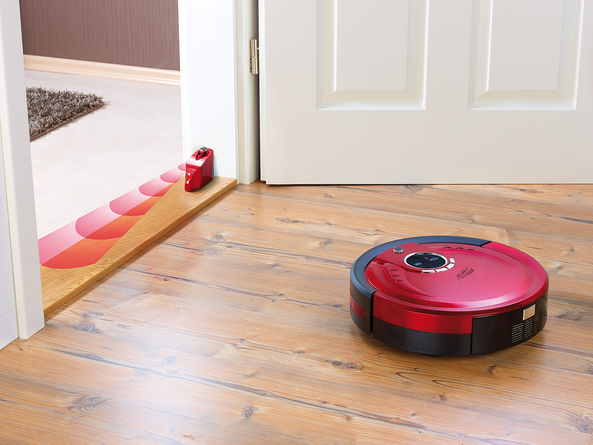 Nur schnell die Küche putzen? Kein Problem: Eine Infrarot-Lichtschranke baut dem Putzroboter eine unsichtbare Wand in den Weg. So kann man den zu reinigenden Bereich nach eigenen Wünschen definieren.