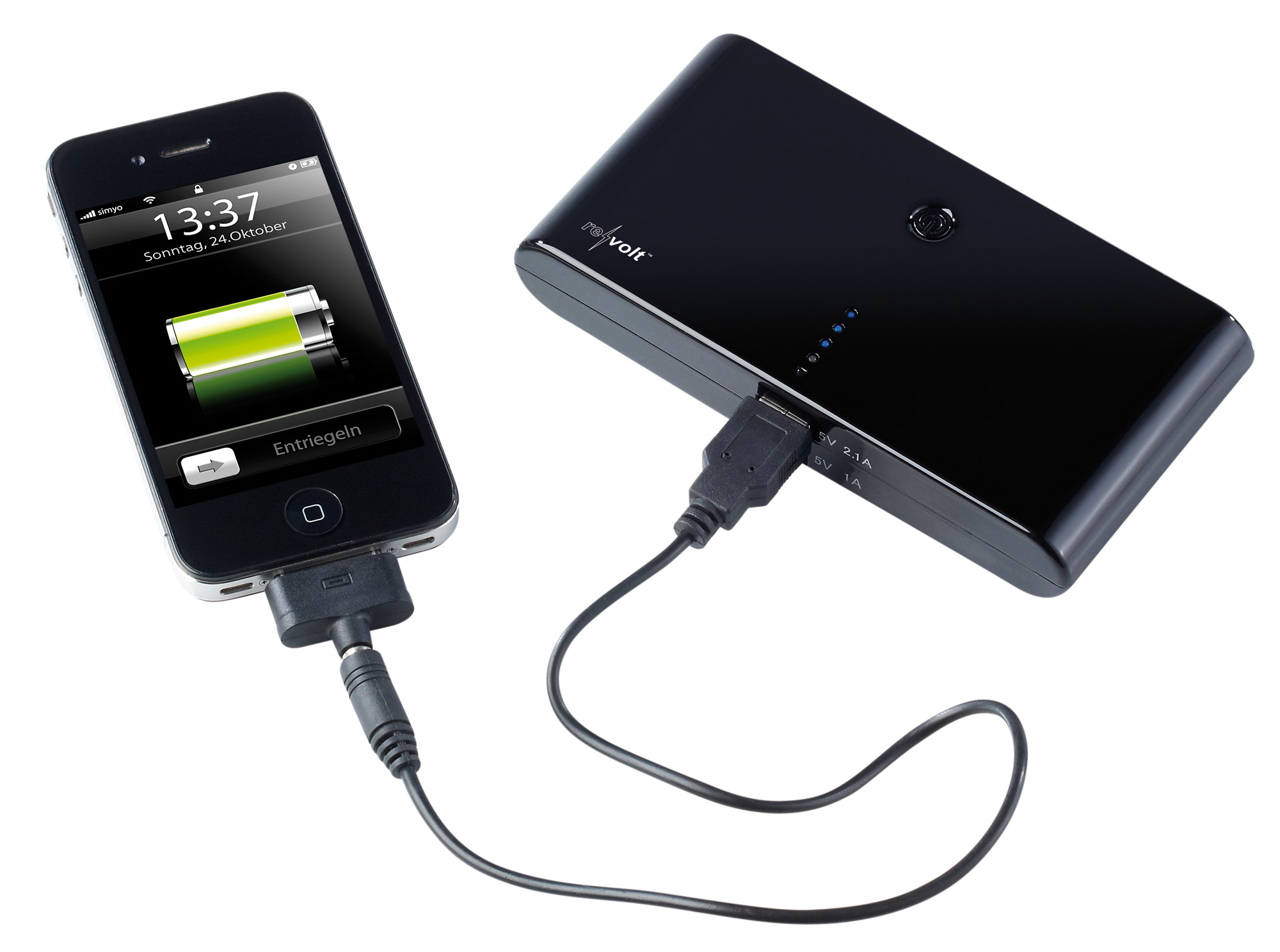 (lifepr) (Buggingen, 09.04.2013) Gigantische Laufzeit-Verlaengerung fuer alle mobilen Begleiter: Mit diesem ultrastarken Notstrom-Kraftwerk von revolt im Kompakt-Format braucht man zum Aufladen keine Steckdose mehr. Weiterer einzigartiger Vorteil: Es lassen sich sogar 2 USB-Geräte gleichzeitig laden.