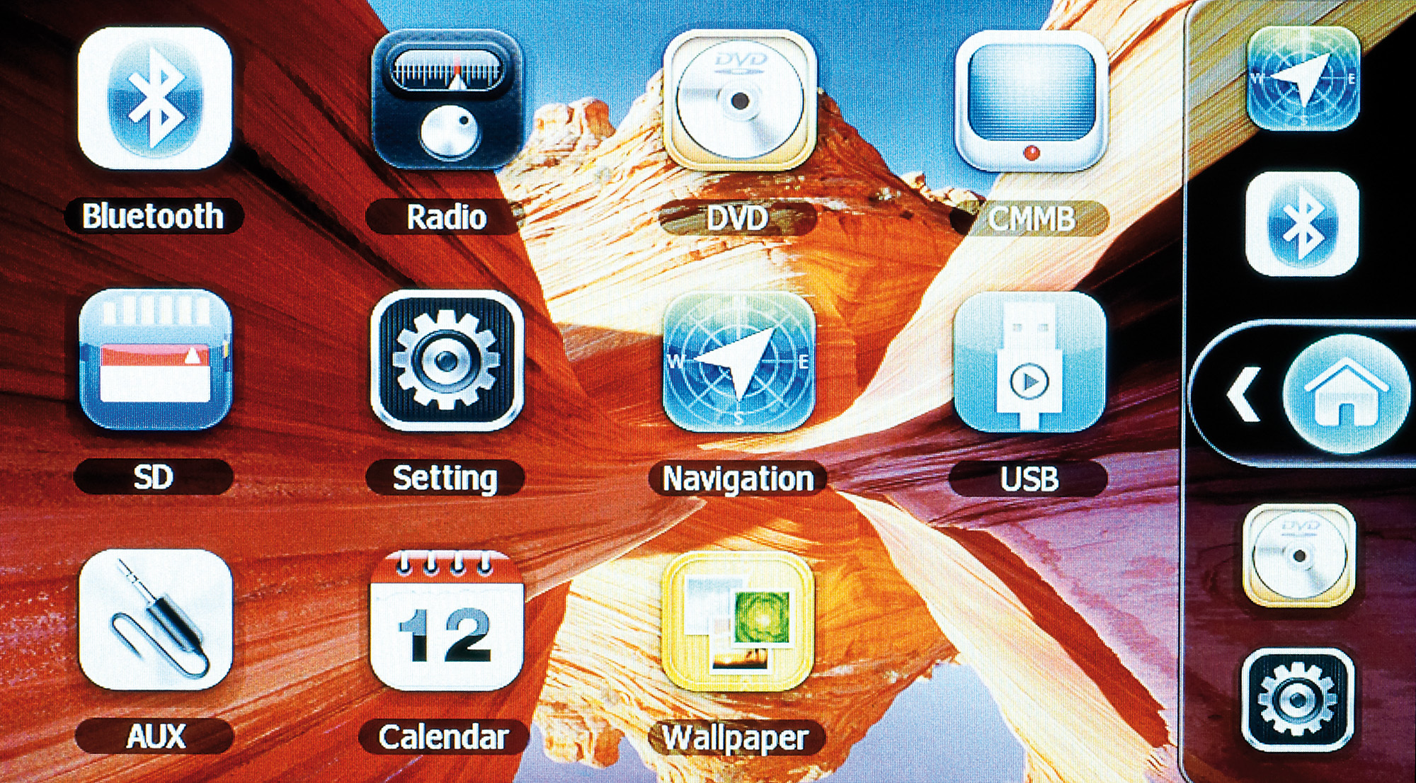 - Extras: Kalender, große Auswahl an Hintergrundbildern, AV-Eingang für Rückfahrkamera