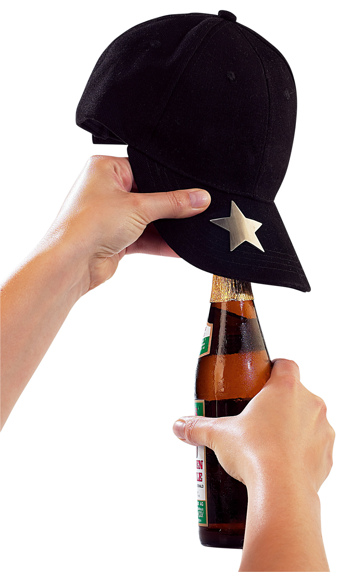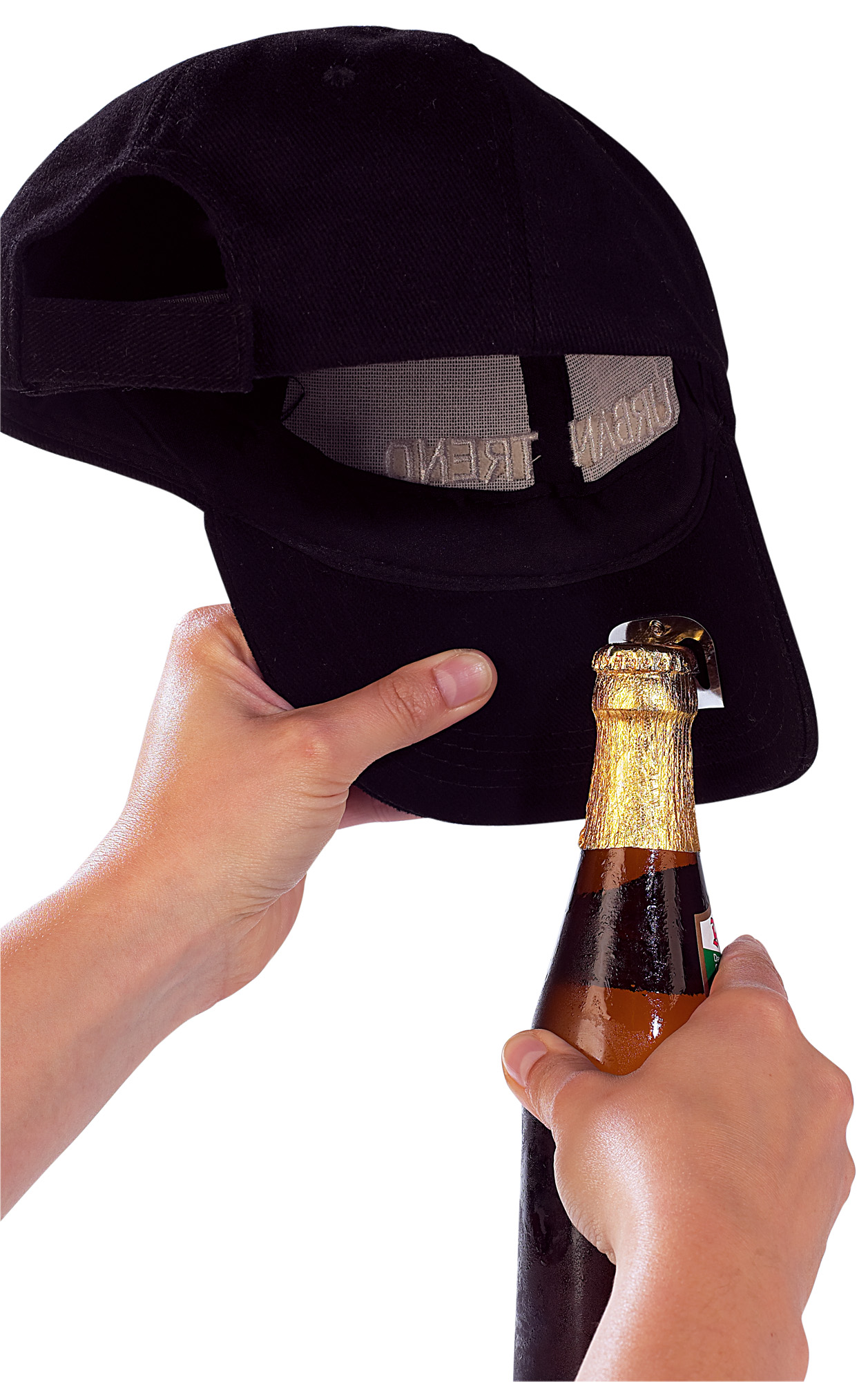 (lifepr) (Buggingen, 23.07.2008) Köpfchen muss man haben, um immer und überall die Flaschen aufzubekommen. Diese Kappe ist mehr als ein witziges Party-Accessoire für die nächste Grillfete! Auch bei allen anderen Freizeit-Aktivitäten wie beim Wandern oder am Strand ist der Flaschenöffner stets in Reichweite. Dieser ist diskret im Schirm der neuen Baseball-Cap integriert.