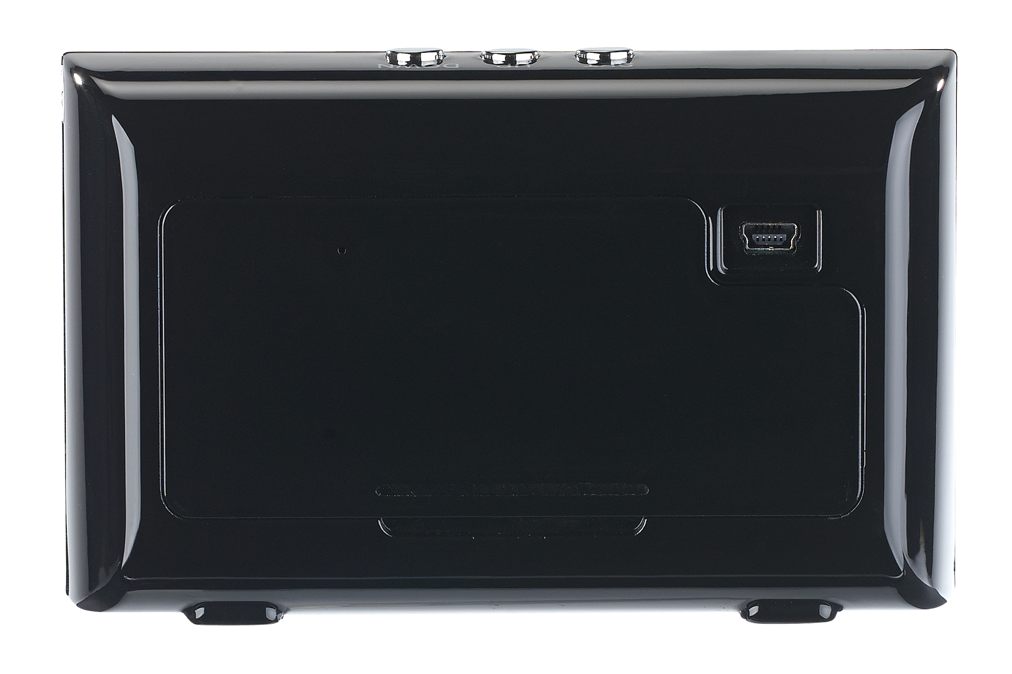 Stylischer Blickfang: Das glänzend schwarze Gehäuse mit blauer LED-Anzeige sieht richtig cool aus. Der Clou: Die Bedien-Elemente zur Bild- und Tonaufnahme liegen versteckt hinter der Batterie-Klappe.