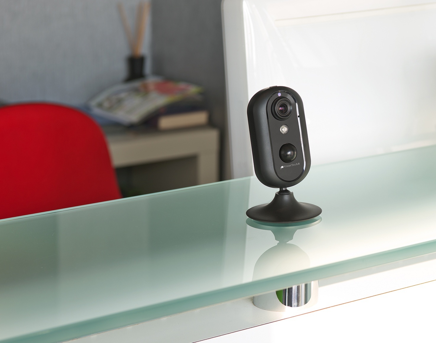 Eindringlinge in die Flucht schlagen: Dank Gegensprechfunktion interagiert man jederzeit mit Personen vor der Linse. Mikrofon und Lautsprecher sind in die Kamera integriert.