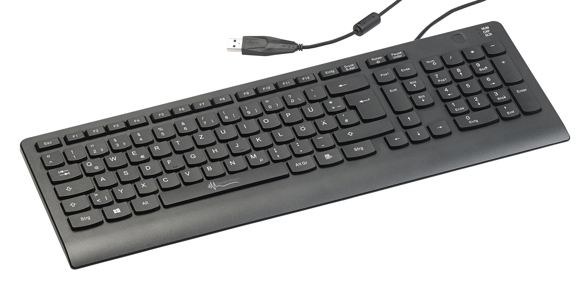 Mit Ziffernblock und gutem Tippgefühl ist diese Standardtastatur von GeneralKeys perfekt für berufliche Vielschreiber. Einfach das USB-Kabel einstecken und loslegen.