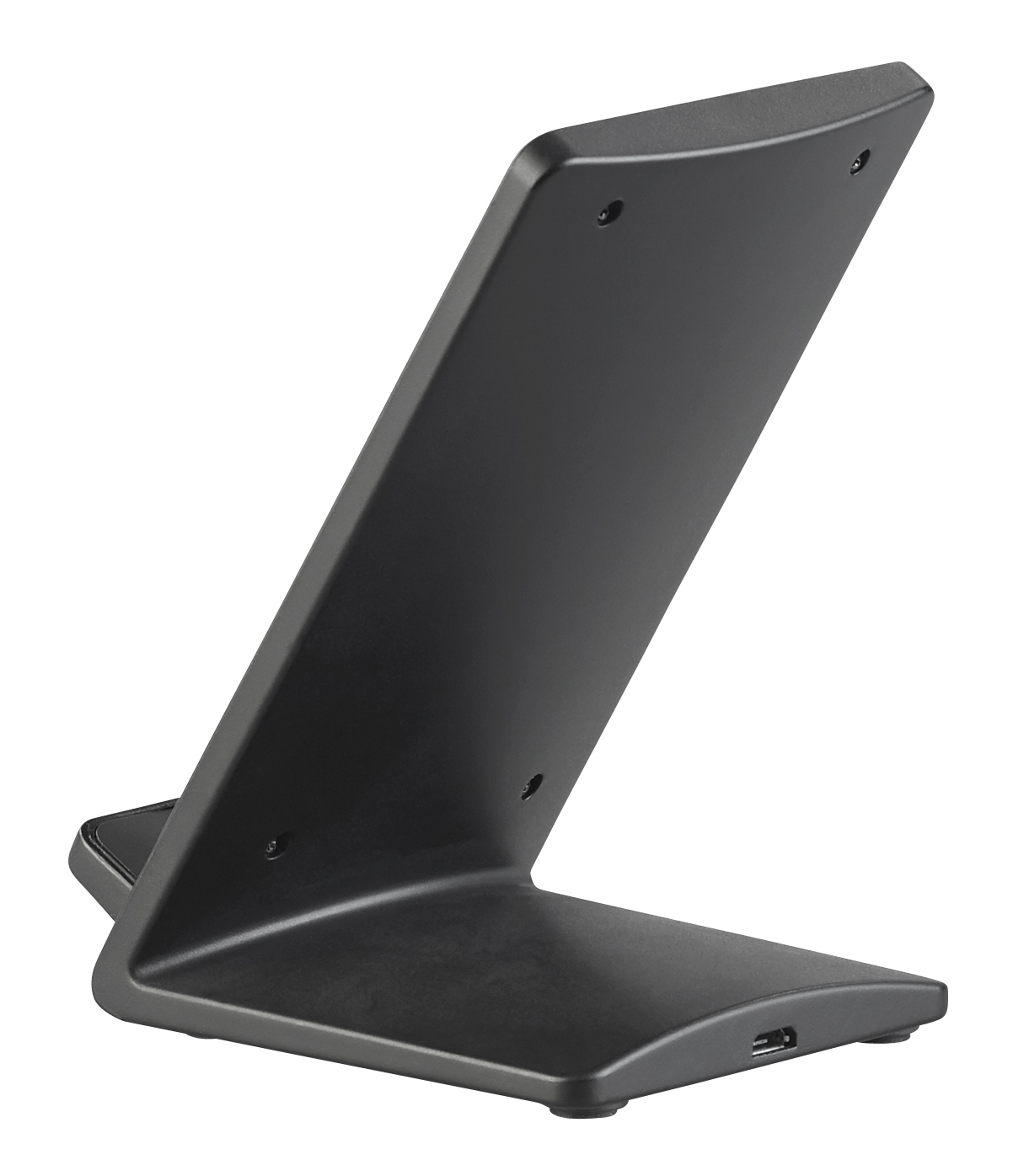 Sicherer Halt: Dank gummierter Ablagefläche und Gummi-Füßen sind das Smartphone sowie die schwarze Ladestation stets gegen Verrutschen gesichert.
