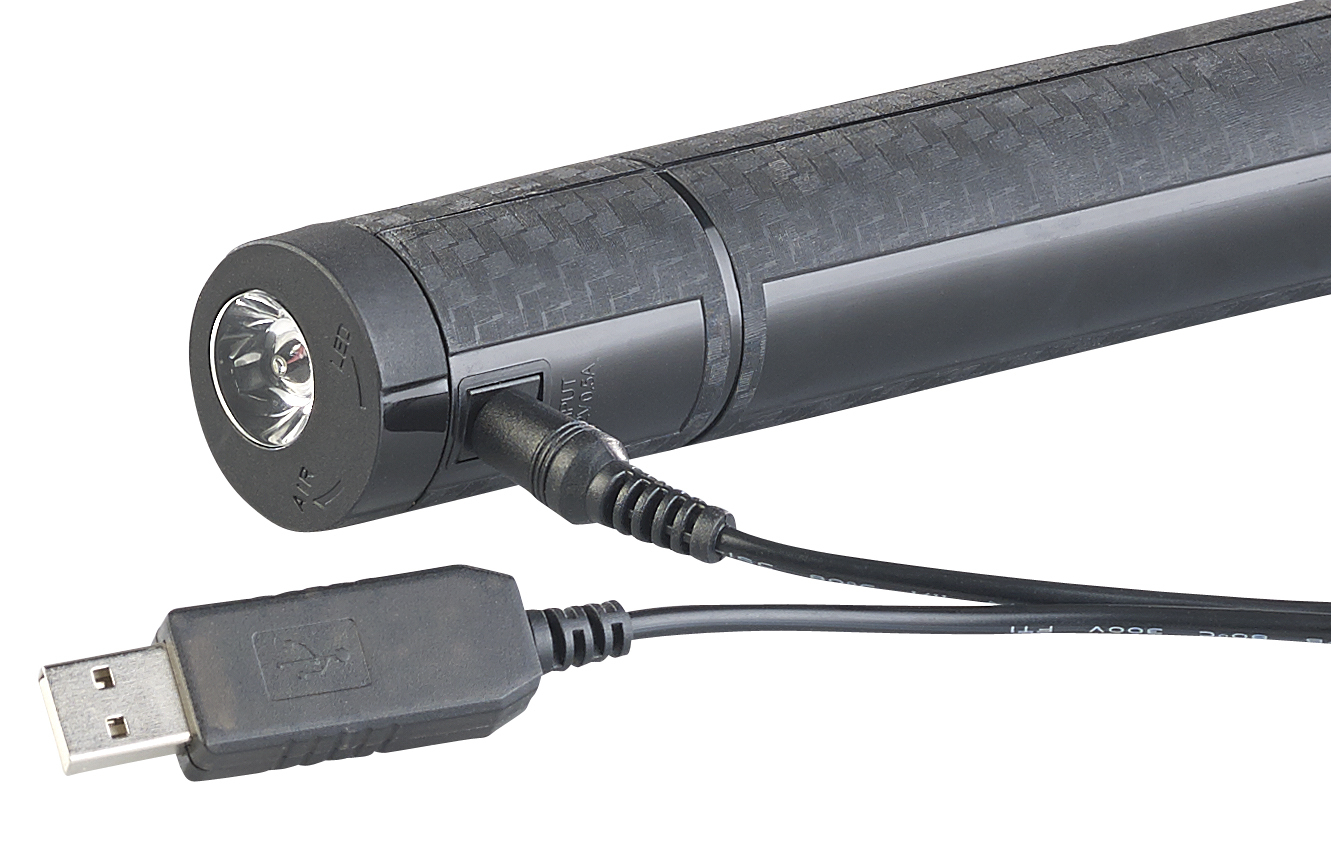 Frische Akku-Energie per USB: Wird die Luftpumpe von AGT Professional mit einem beliebigen USB-Netzteil verbunden, lädt man den Akku zu Hause auf. Auf längeren Radtouren geht das unterwegs auch problemlos mit einer Powerbank!