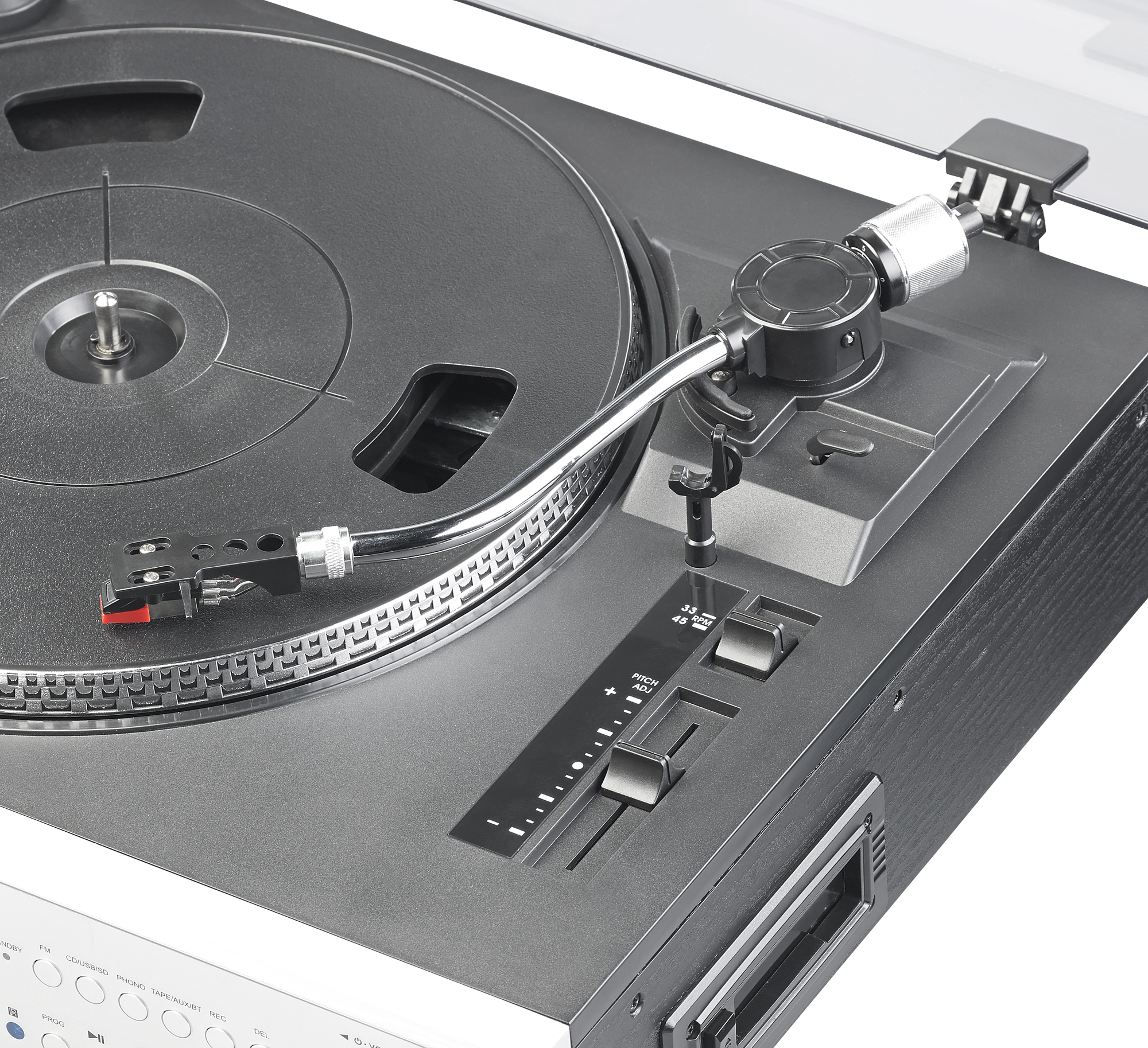 Für höchsten Vinyl-Genuss: Der gewichtete Tonarm mit hochwertigem Abnehmer sorgt für beste Wiedergabe-Qualität beim Abspielen und Digitalisieren der Schallplatten-Schätze. Dank Pitch-Regler justiert man zudem die Abspiel-Geschwindigkeit extra-präzise.