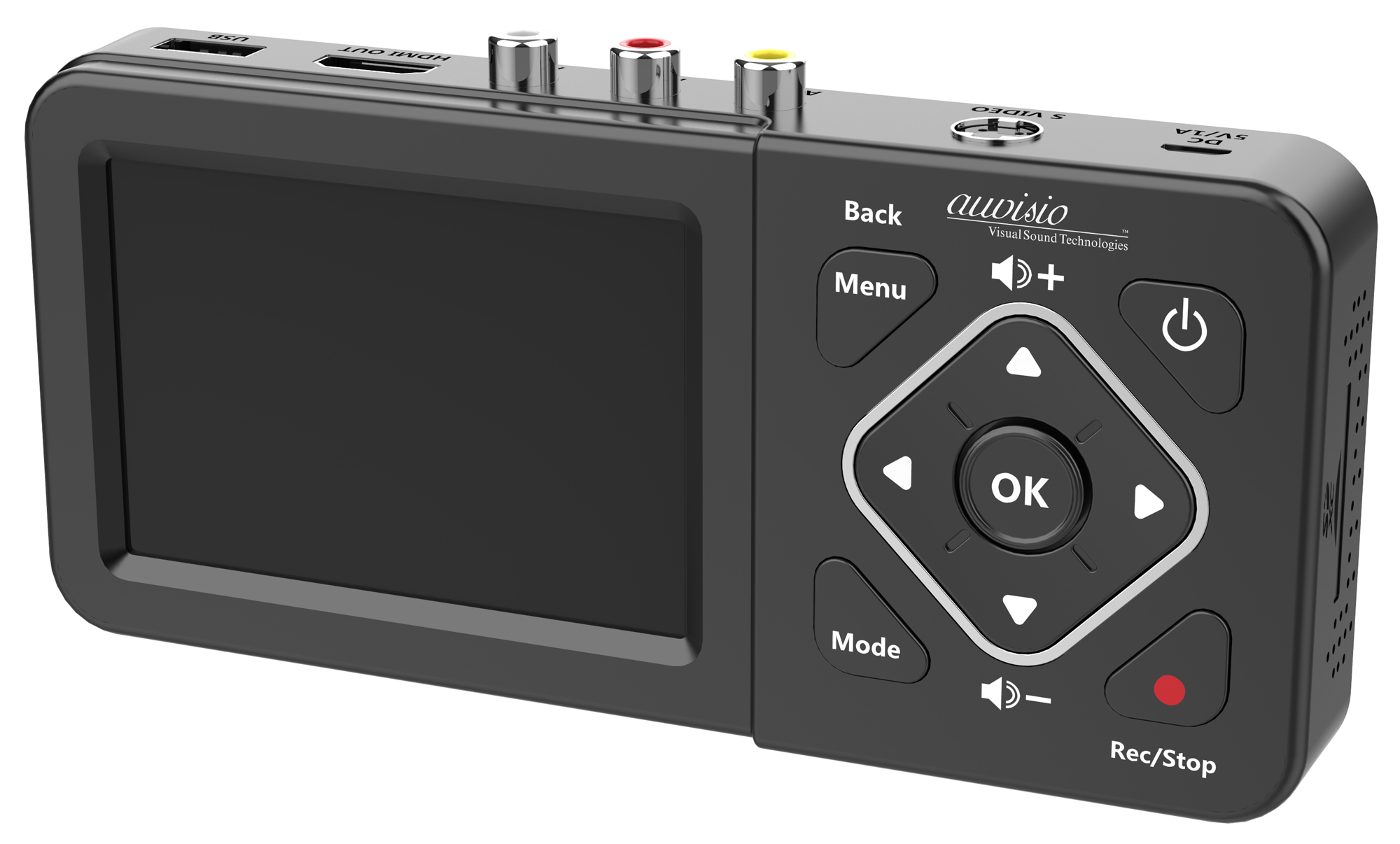 Integrierter Farb-Monitor für bequeme Aufnahme-Kontrolle: Im übersichtlichen Menü des Rekorders von auvisio lassen sich die Aufnahme-Einstellungen festlegen. Man hat jederzeit im Blick, was man aufnimmt.