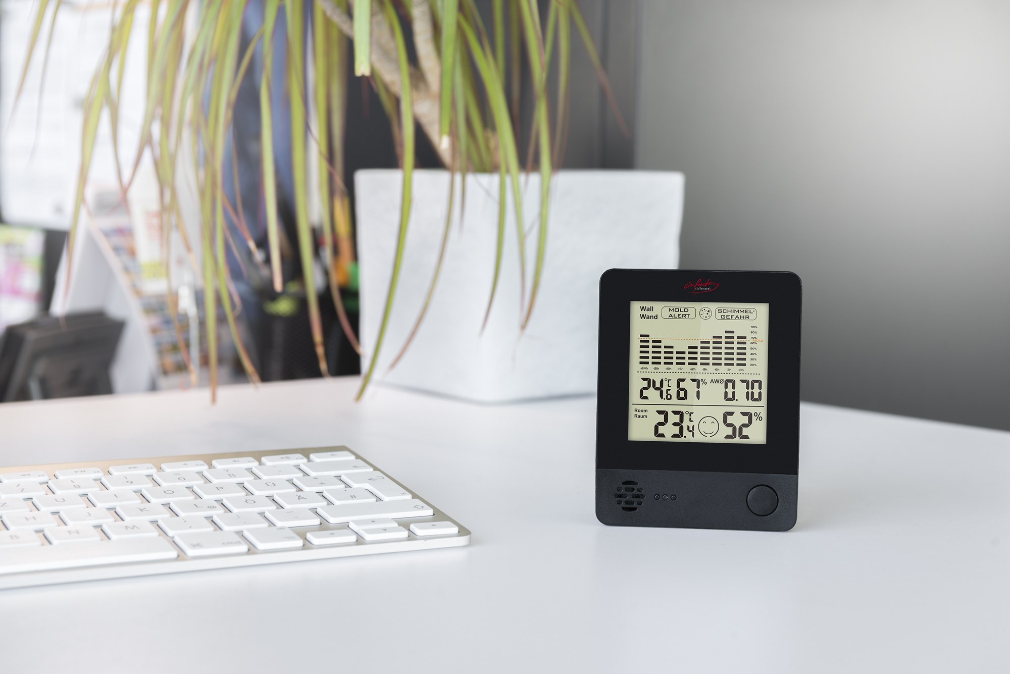 Warnt vor Schimmelgefahr: Ist die Wand oder die Raumluft zu feucht, erscheint auf dem Display eine Warnmeldung. So kann man sofort eingreifen - z.B. durch gezieltes Lüften.
