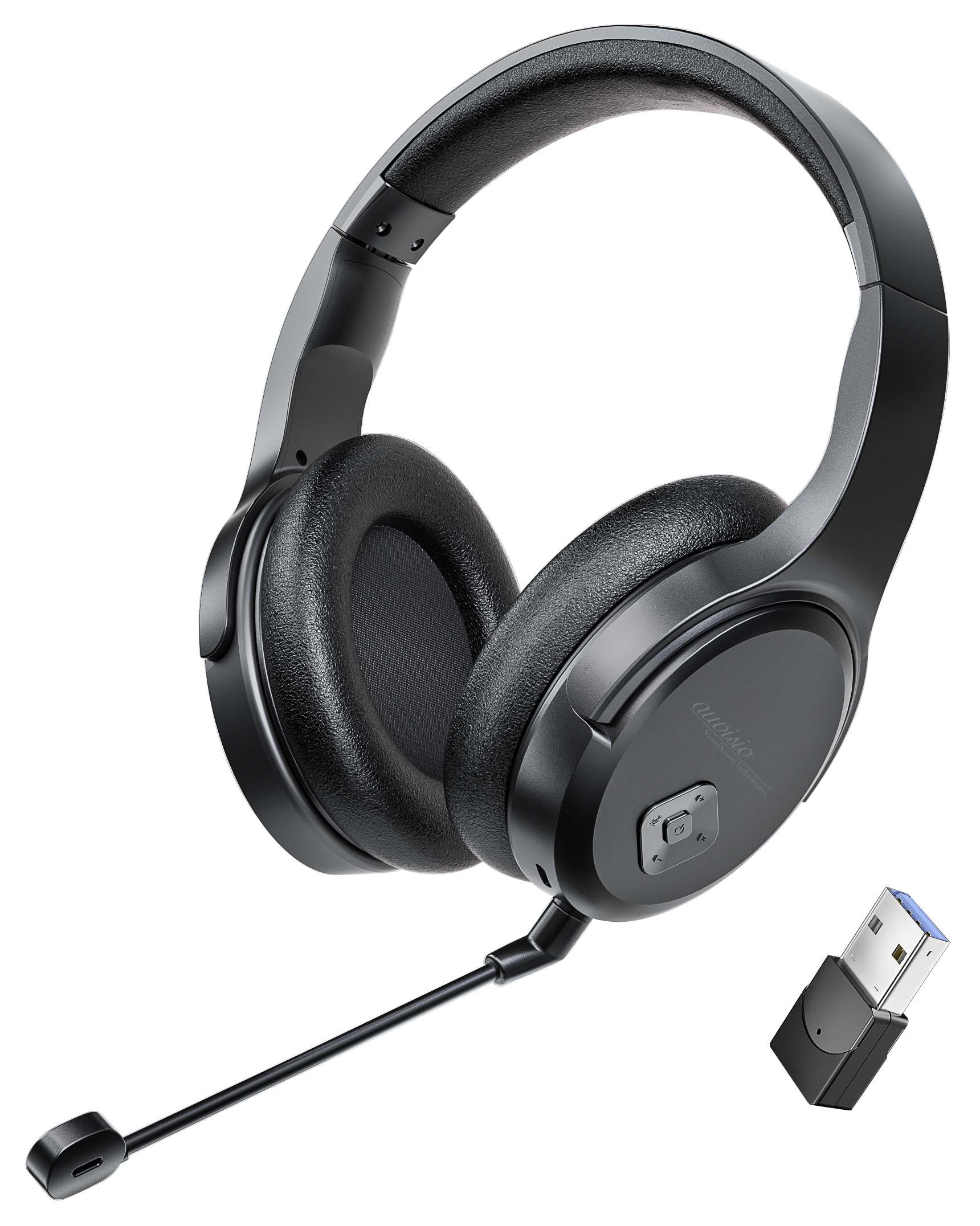 Die Wunsch-Musik kabellos genießen: Einfach den Transmitter mit dem PC oder Mac verbinden und schon streamt man seine Lieblings-Lieder bequem auf das Headset von auvisio. Dank 2,4-GHz-Funkverbindung hat das Headset stets eine gute Verbindung und mit bis zu 15 Metern Reichweite ist man vollkommen mobil.