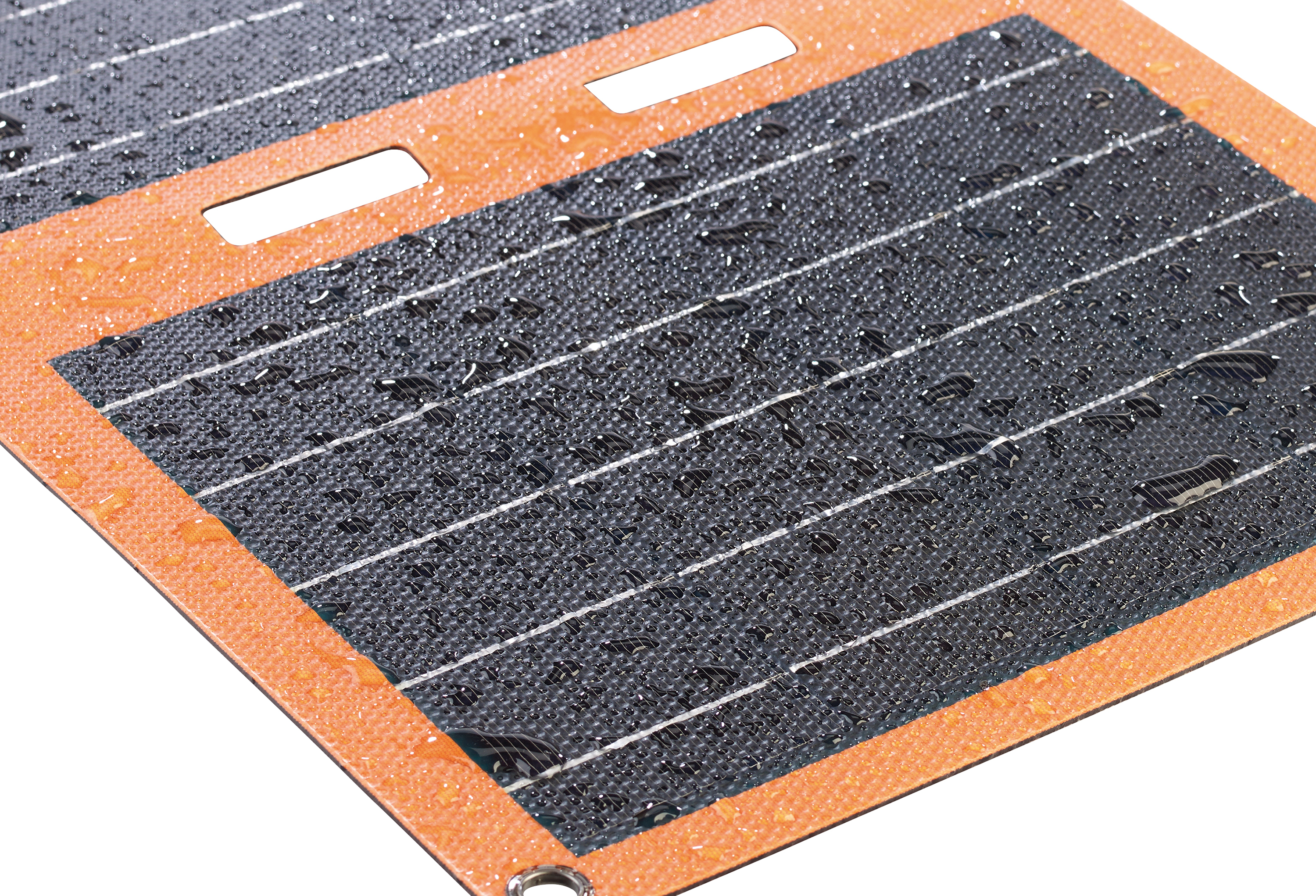 Hightech ETFE-Beschichtung: Die Frontseite der 3 Solarmodule ist mit einer ETFE-Kunststoffschicht bedeckt und bietet hervorragenden Schutz vor Umwelteinflüssen wie z.B. Salzwasser. Dadurch sind sie nicht nur widerstandsfähiger als herkömmliche Panels, sondern sie sind leichter und arbeiten mit einer Lichtdurchlässigkeit von max. 95 % auch effizienter.