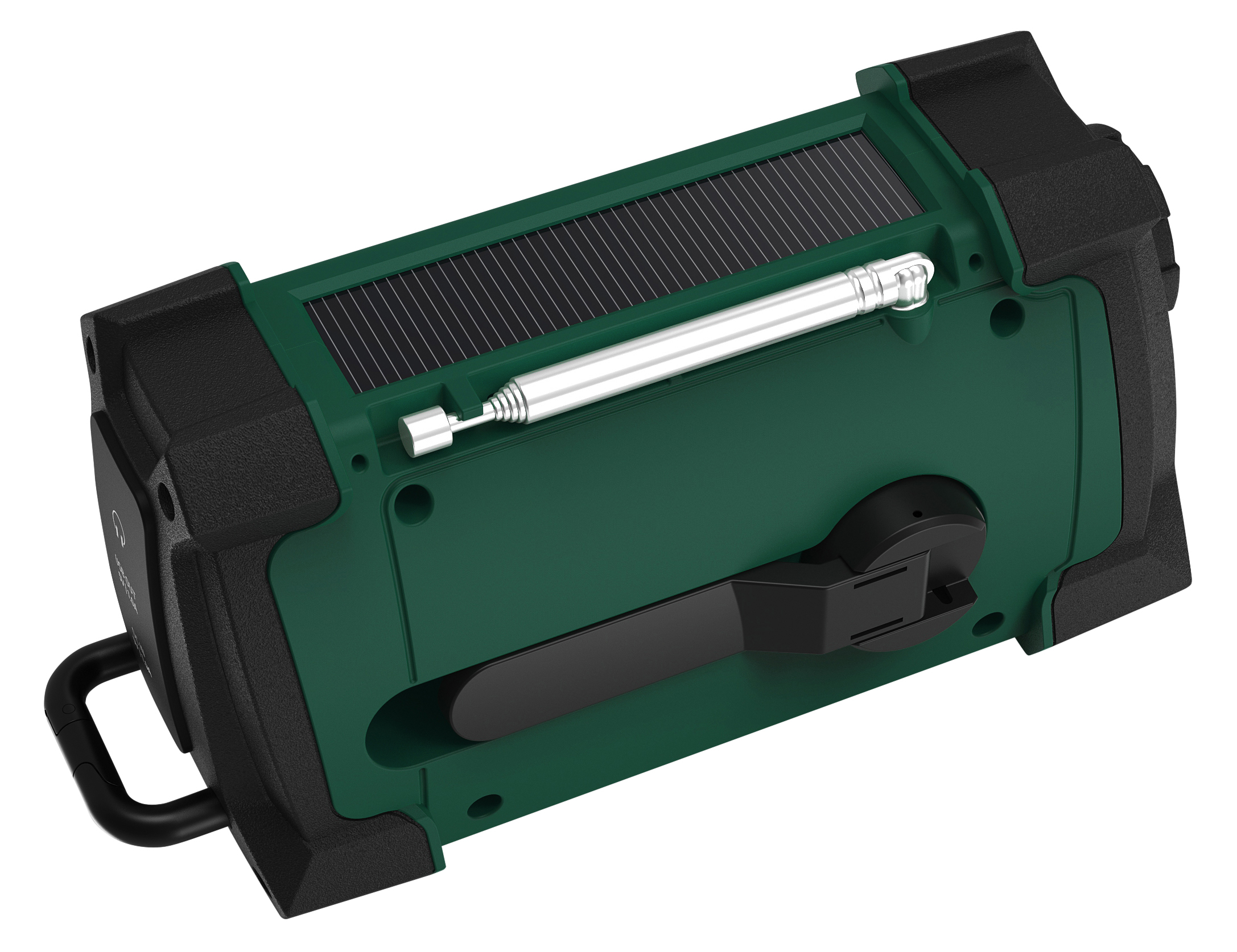 Und wenn die Sonne doch nicht scheint, lädt man den Akku überall schnell über die Handkurbel auf: So muss man auch bei schlechtem Wetter nicht auf den Lieblingssender verzichten.