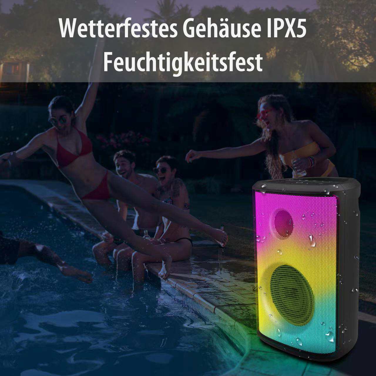 Mit der mobilen Outdoor-Party-Audioanlage von auvisio sorgt man für Stimmung auf jeder Party - auch draußen: Dank starkem Sound und Karaoke-Funktion ist die Partyanlage ein echter Spaß-Garant. Das mehrfarbige LED-Licht mit 6 verschiedenen Leuchteffekten macht sie zum coolen Hingucker.