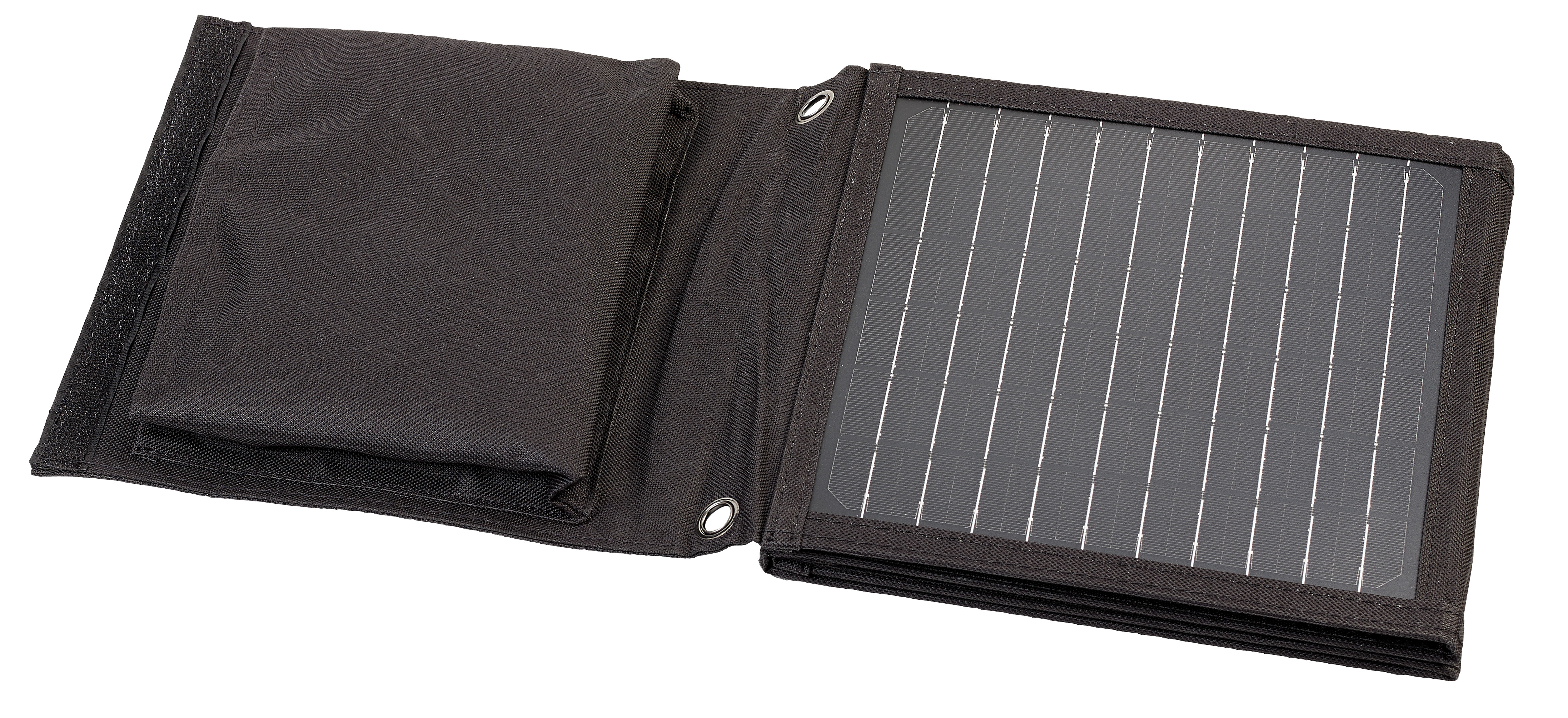 Umweltfreundliches Solarkraftwerk zum Mitnehmen: Das Solar-Ladegerät wird einfach auseinander gefaltet und dann an das Smartphone, den Tablet-PC oder einer Powerbank angeschlossen. Schon sammelt dieses Mini-Photovoltaik-System fleißig Energie für die mobilen Begleiter. Wieder kompakt zusammengeklappt lässt es sich bequem in Rucksack, Fahrradtasche oder dem Auto verstauen.