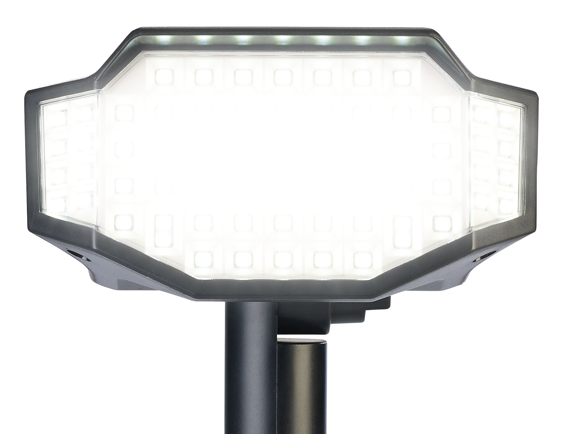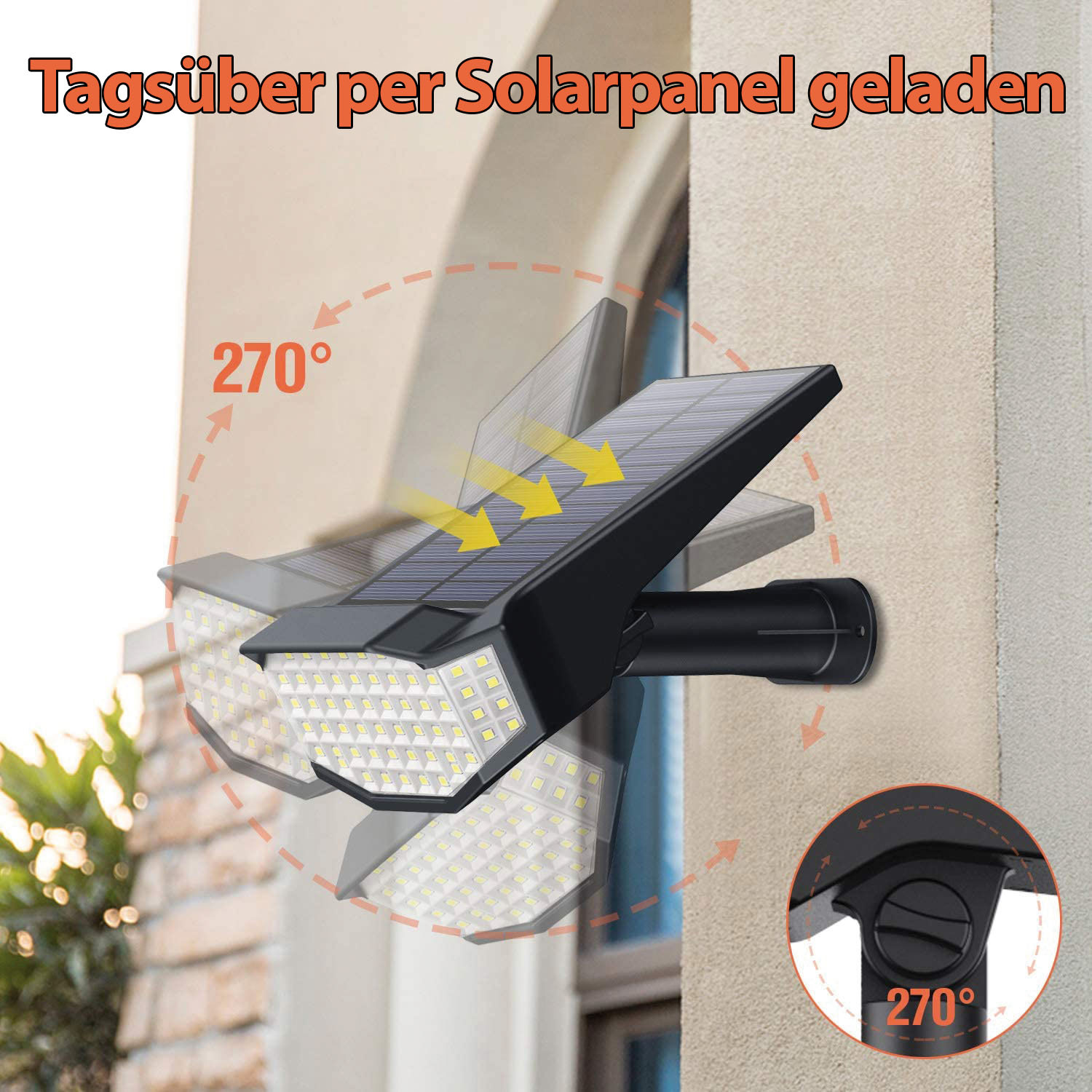 Leuchten in die Wunschrichtung: Die Strahler richtet man dank neigbarem Leuchtenkopf gezielt aus. So leuchtet man ganz nach Bedarf nach oben oder unten. Ihr großer 180°-Abstrahlwinkel sorgt zudem für eine großflächige Beleuchtung von Wegen, Rasenflächen oder Eingangsbereichen.