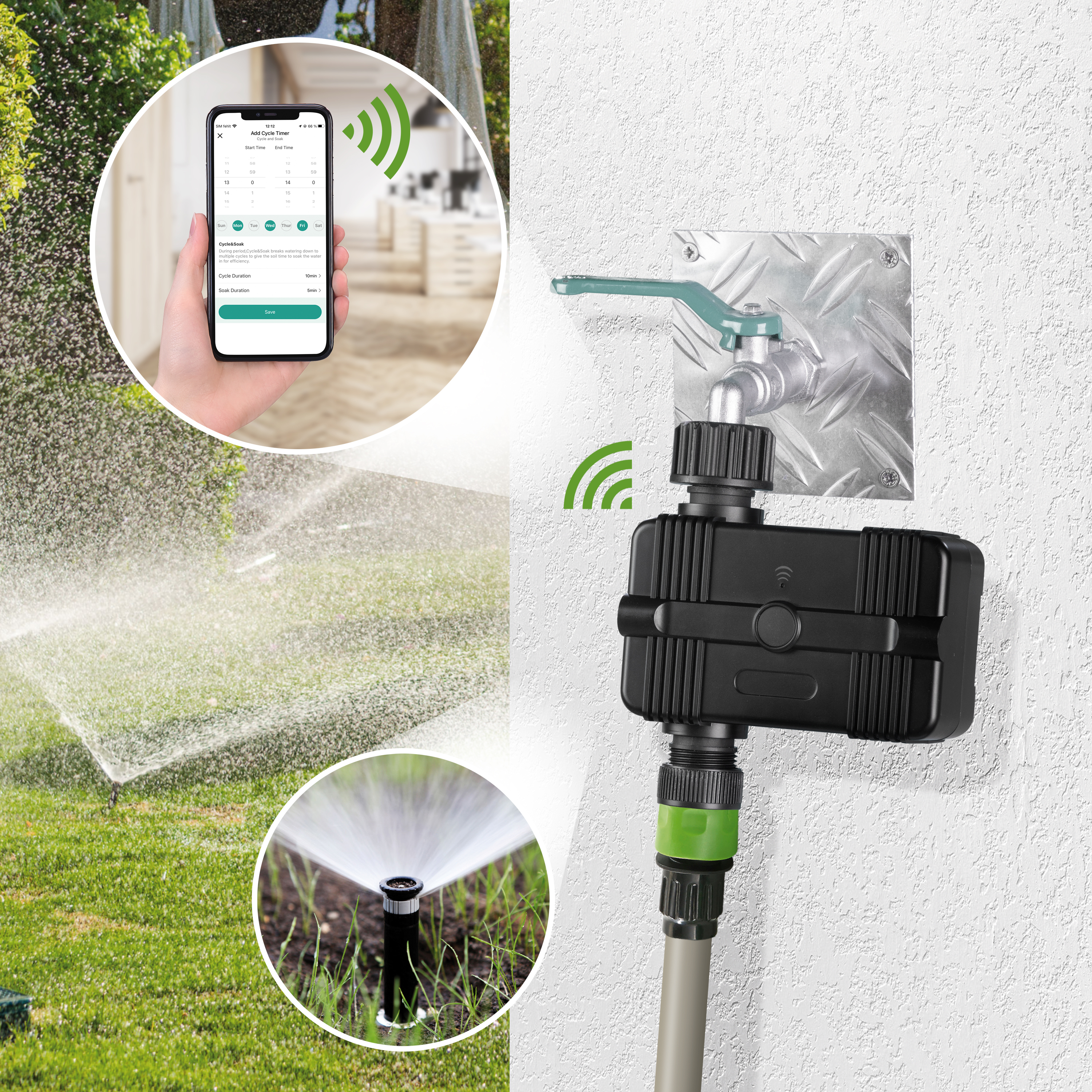 Das Smart Home automatisieren: Sind auch andere kompatible Geräte mit der App gekoppelt, steuert man alles zentral - direkt über das Smartphone! Die Geräte lassen sich sogar miteinander vernetzen: Beispielsweise lassen sich mehrere Bewässerungscomputer gleichzeitig starten.