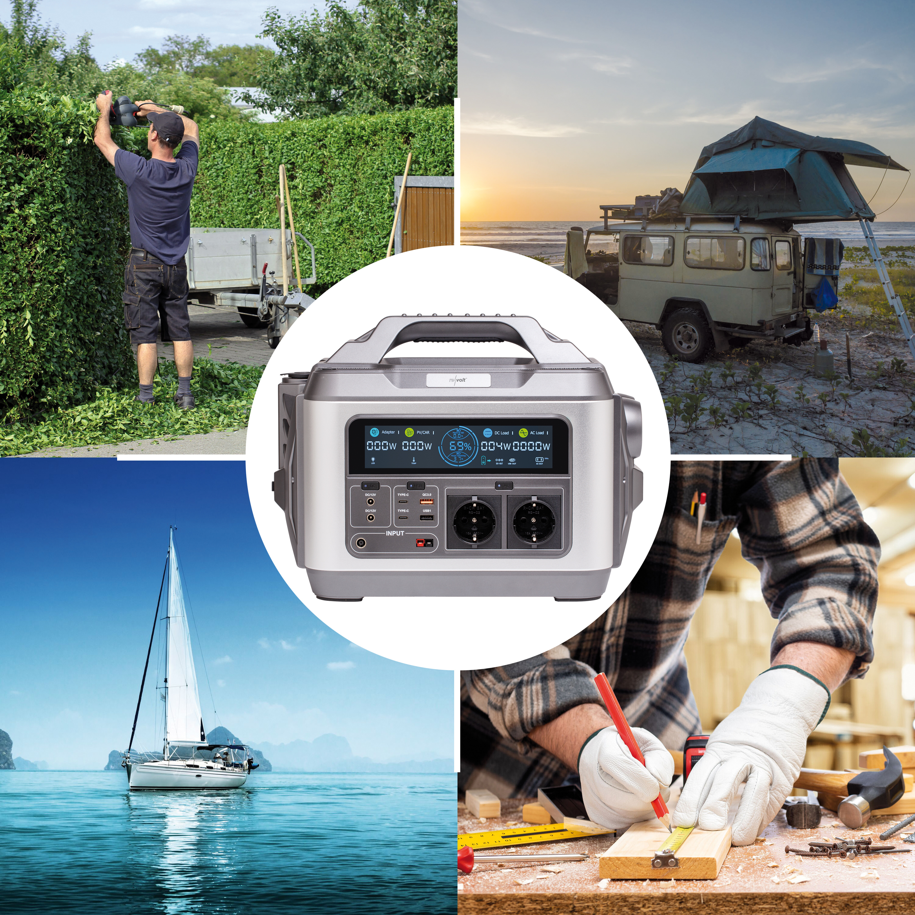 (lifepr) (Buggingen, 30.05.2023) Mit der Powerstation & Solar-Generator HSG-1120 von revolt ist man unabhängig von einem Stromanschluss, ob im Schrebergarten, am See, beim Camping, auf dem Boot, in der Berghütte oder einfach als Notstrom-Akku für alle Fälle.