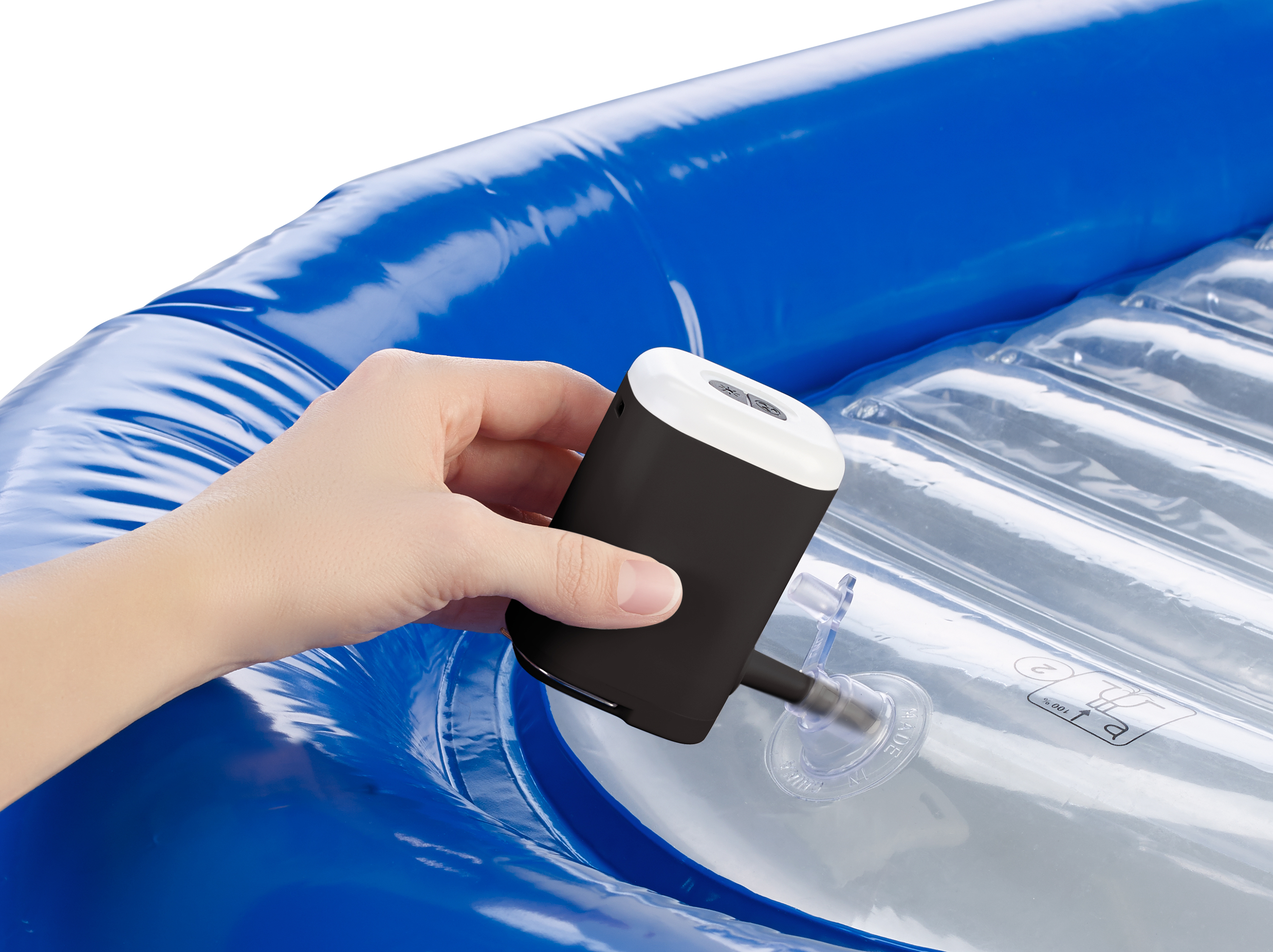 Ideal für unterwegs: Dank Akku geht der elektrischen Luftpumpe auch draußen nicht die Puste aus. Praktisch: Den Akku lädt man auch ganz bequem an einer Powerbank wieder auf.