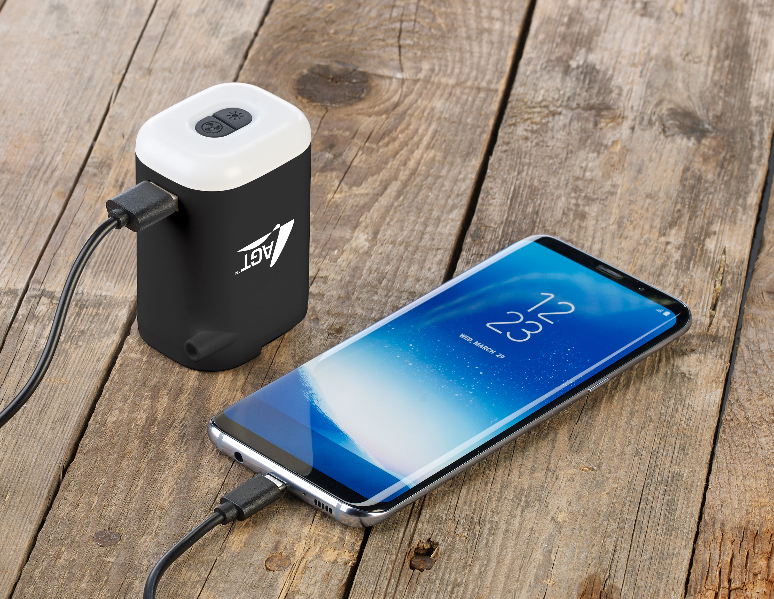 (lifepr) (Buggingen, 02.06.2023) Keine Plackerei mehr mit dem Aufpumpen von Luftmatratzen, Bällen, Planschbecken! Die Mini-4in1-Luftpumpe ALP-230 von AGT pumpt dank Akku überall nicht nur auf, sondern ist auch zum Abpumpen geeignet. Außerdem fungiert sie auch als Leuchte und Powerbank.