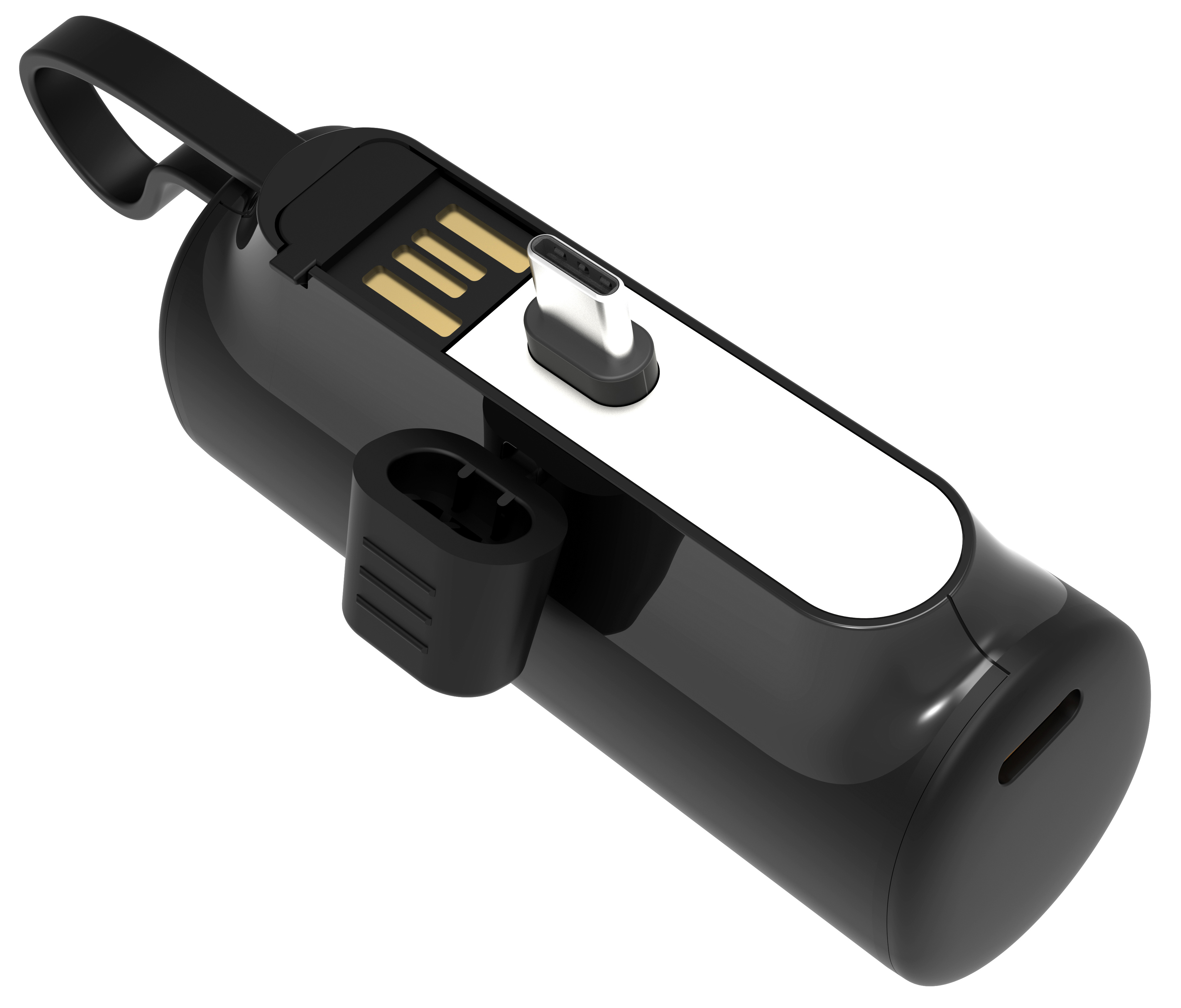 Externer Akku für Smartphone, Tablet & Co: Einfach die Mini-Powerbank per USB-C-Stecker direkt in den Ladeanschluss des Mobilgeräts stecken. Schon wird es geladen - ganz ohne Kabel!