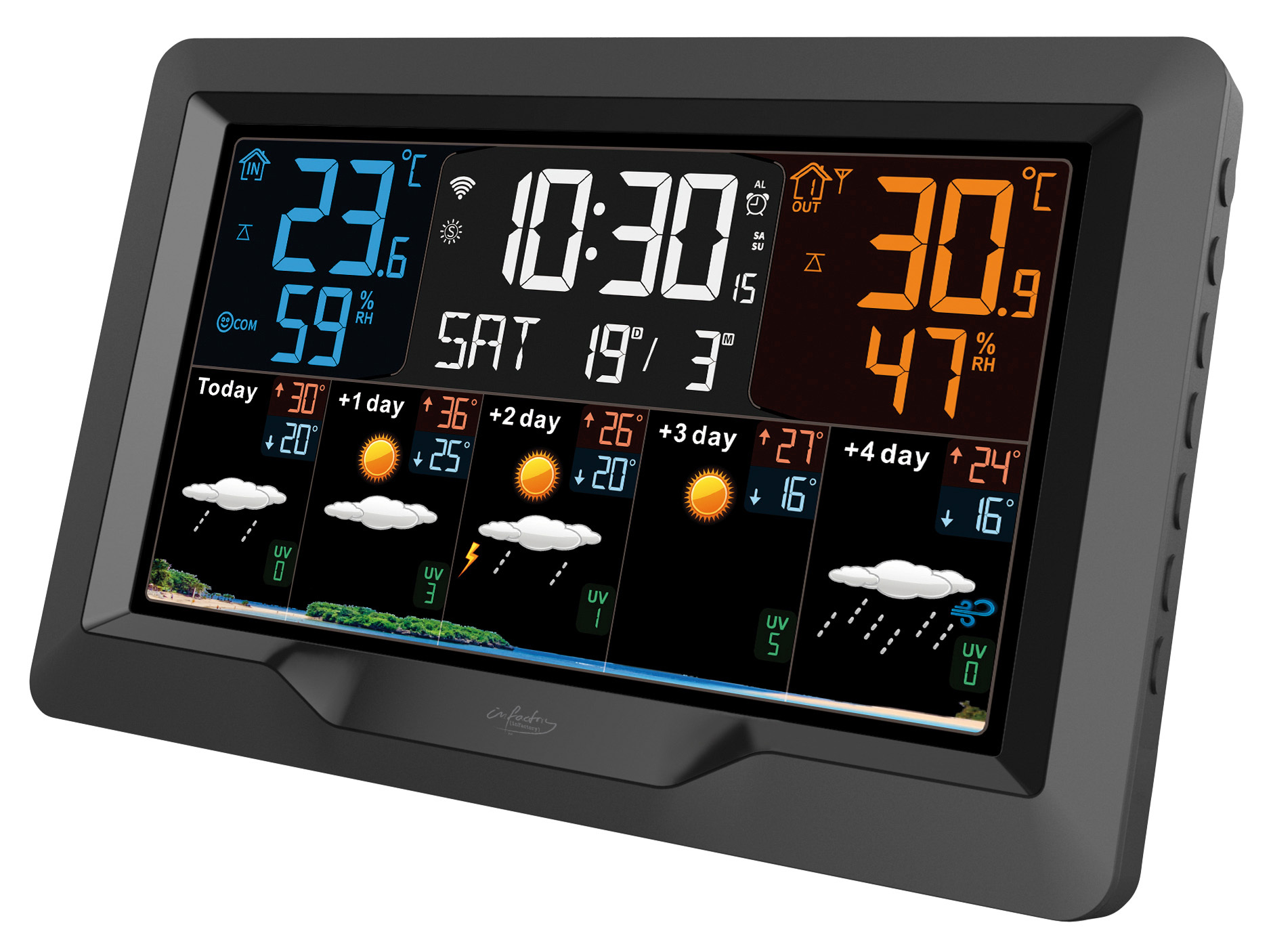 (lifepr) (Buggingen, 10.10.2023) Mit der Internet-Funk-Wetterstation FWS-900 mit Außensensor und App-Unterstützung von infactory hat man das Wetter immer im Blick: Der 5-Tage-Wettertrend zeigt zusätzlich auch den UV-Index an! Außerdem lässt sich die Wetterstation in das ELESION- sowie Smart-Life- und Tuya-Smarthome integrieren.
