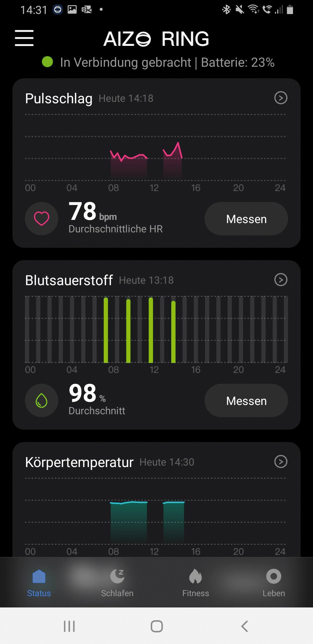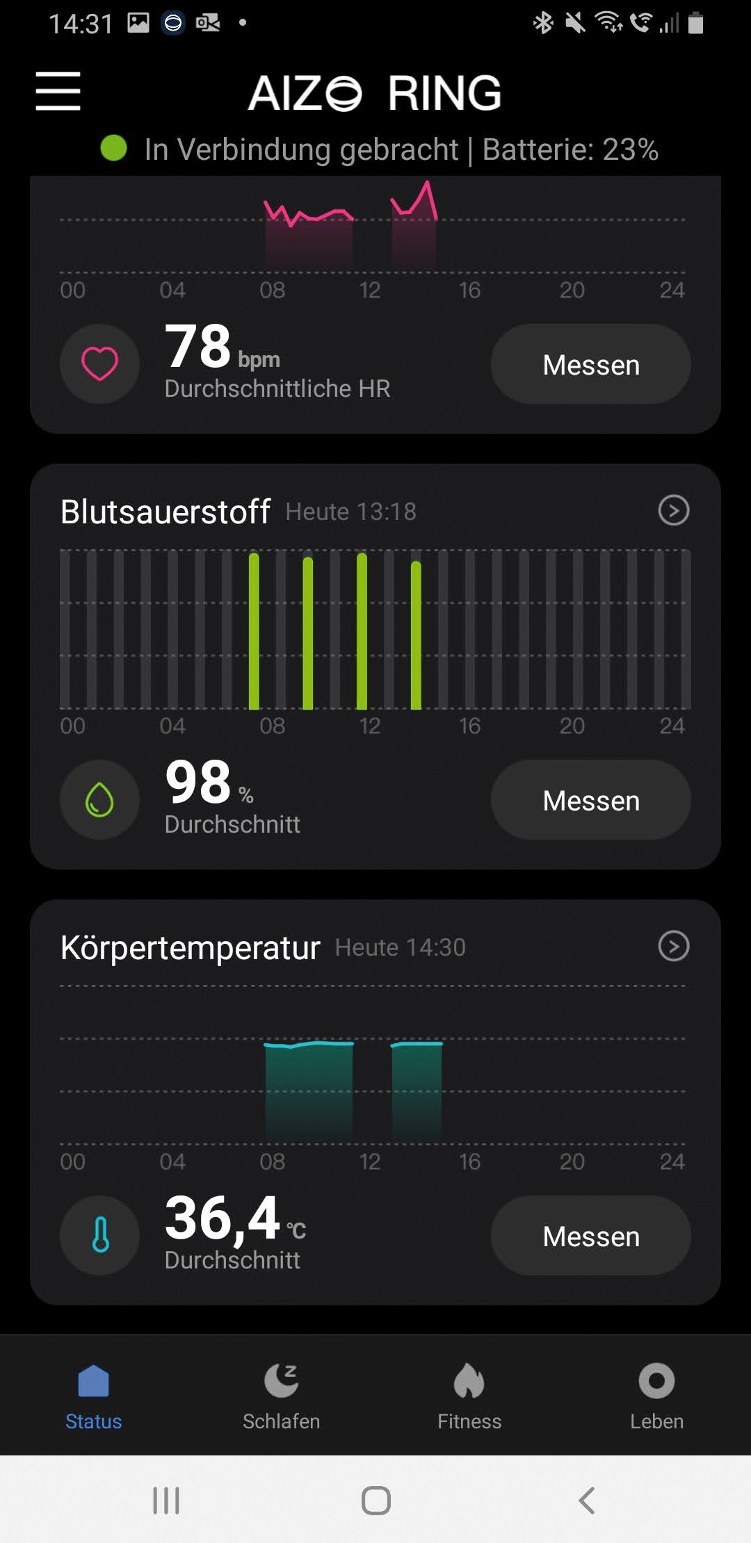Den Fitness-Tracker jetzt stilvoll am Finger tragen: Der neue Fitness-Ring ist trotz seiner geringen Größe mit zahlreichen Sensoren ausgestattet, die Herzfrequenz, Sauerstoffsättigung des Blutes und Körpertemperatur per App auf dem Mobilgerät anzeigen sowie die zurückgelegten Schritte zählt. So trainiert man besonders effektiv und kann seine Leistung besser einschätzen. Durch die kontinuierliche Datenaufzeichnung ergibt sich ein umfassendes Bild der Fitness.
