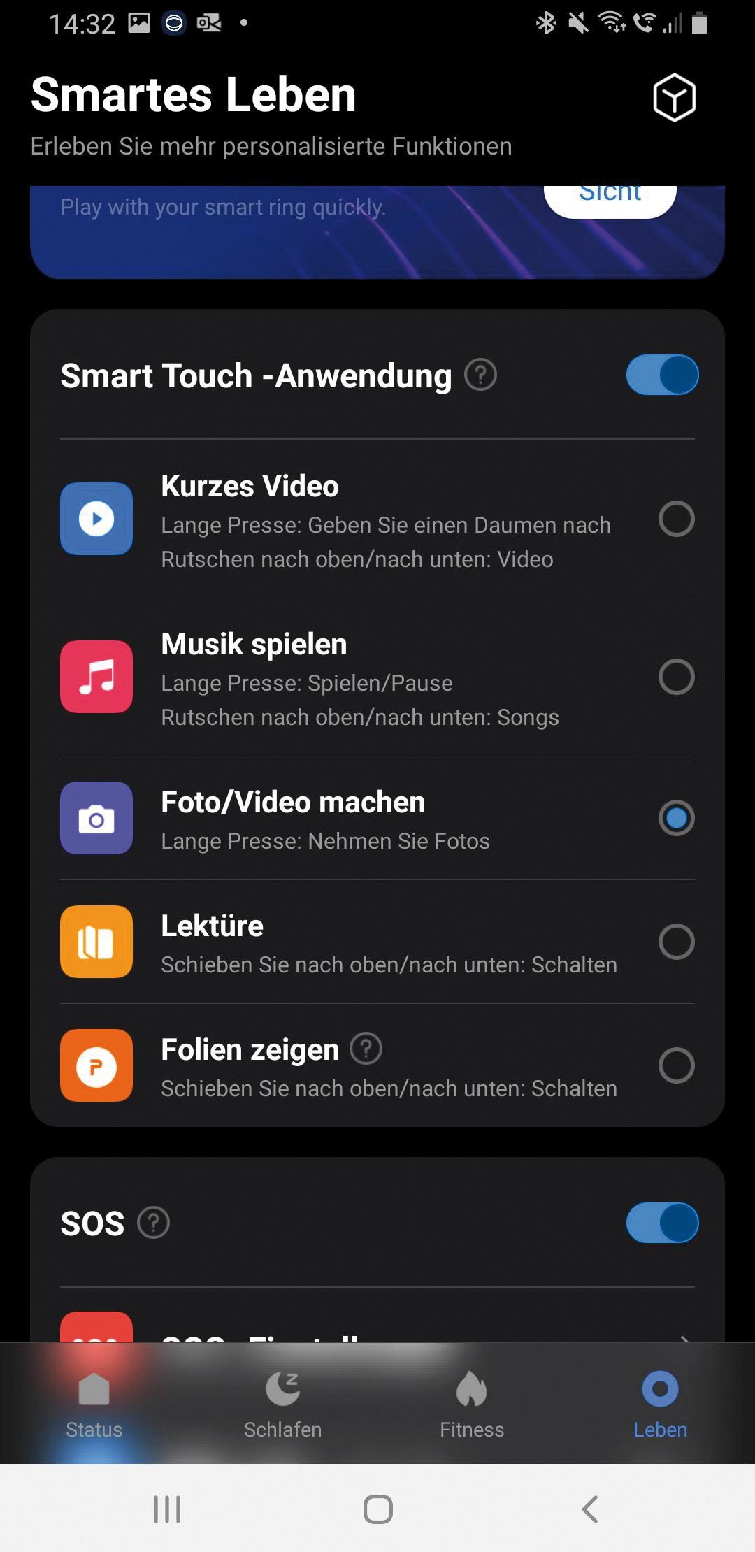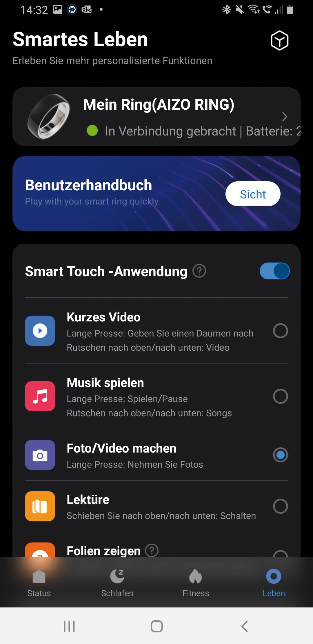 Alles im Griff per Fingertipp: Dank zuschaltbarer Touch-Funktion steuert man Multimedia und Apps mit nur einer Hand. Fotos oder Filme nimmt man einfach über das Smartphone mit einer unauffälligen Berührung des Rings auf. Lieblingsmusik oder Videos lassen sich ebenfalls abspielen. Sogar eine Powerpoint-Präsentation hält man jetzt freihändig und souverän, denn ein Fingertipp genügt, um die Folien zu wechseln.