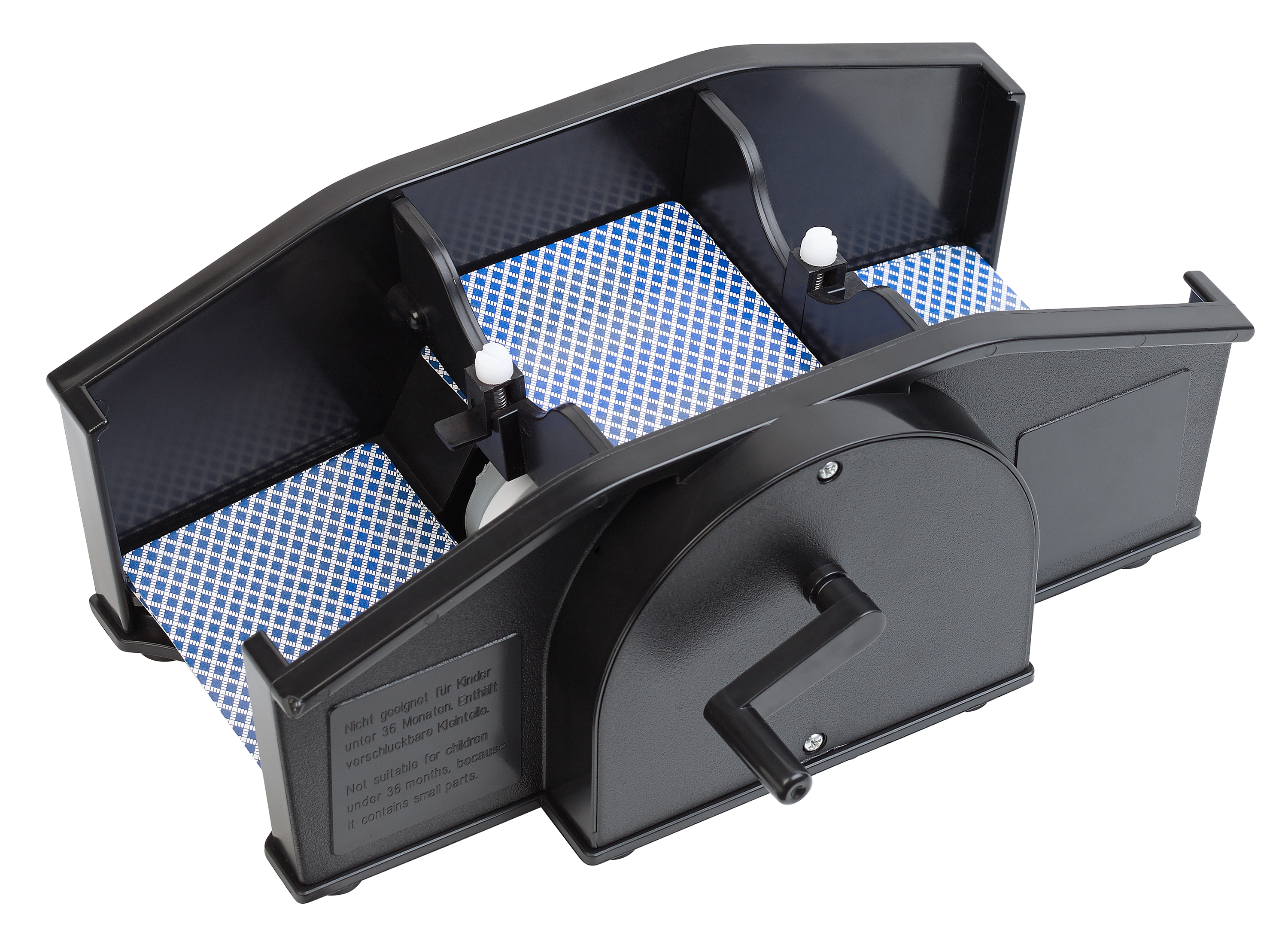 Schnell gemischt: Ab sofort möchte jeder für das Mischen der Karten zuständig sein. Das Betätigen der Handkurbel macht Spaß und ist auch mit wenig Kraftaufwand sehr einfach.
