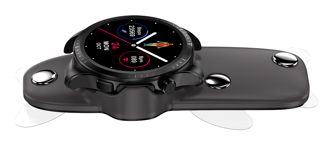 Flexible Handhabung: Dank 3 separater Elektroden hält man die Halterung mit eingesetzter Smartwatch zum Aufzeichnen der Werte auch einfach in der Hand. So lässt sich die Herz-Überwachung ideal in den Alltag integrieren.