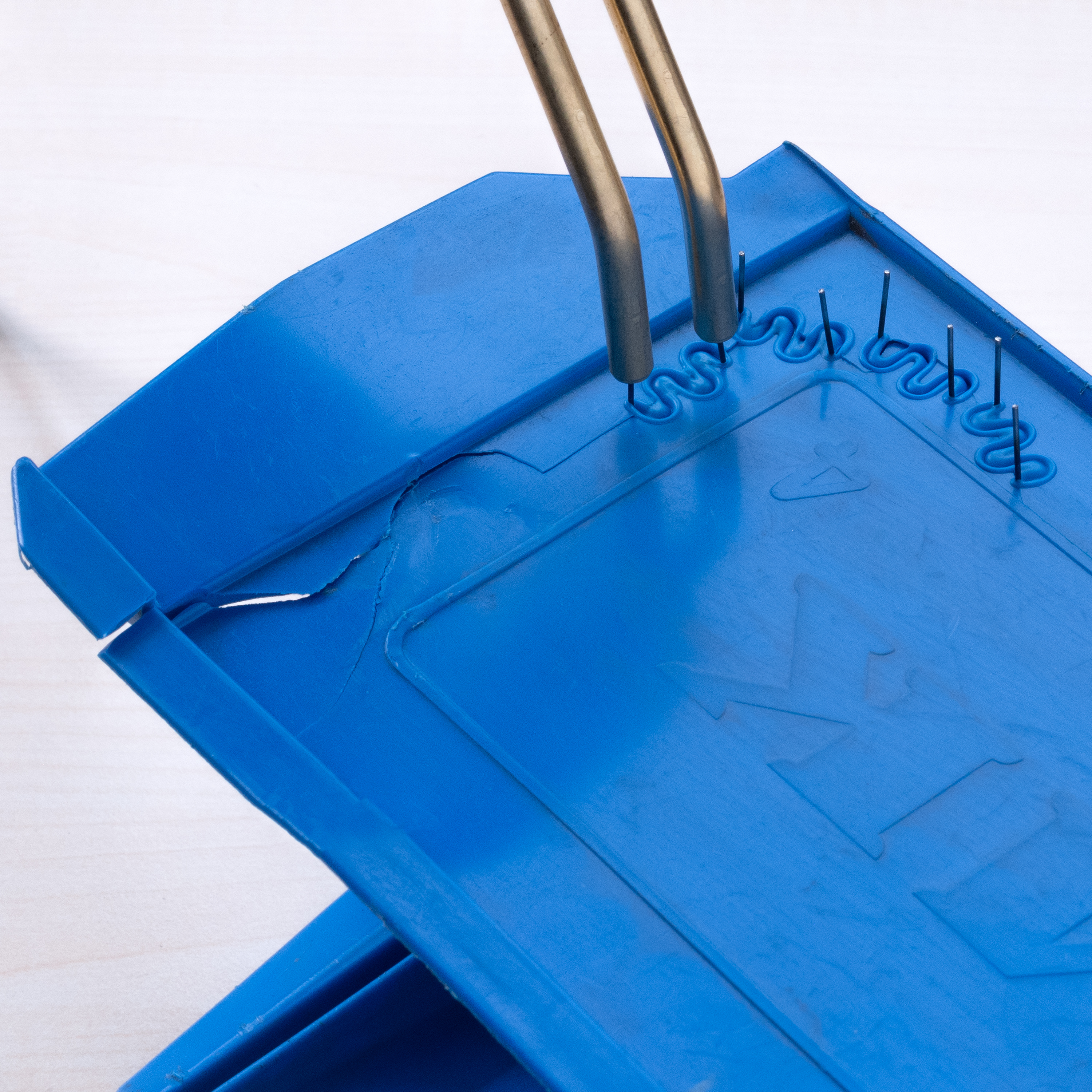 Einfache Anwendung: Je nach Form und Größe des Kunststoffrisses wird der passende Schweißnagel in das Gerät eingelegt. Dann drückt man ihn auf den zu schweißenden Riss und betätigt den Heizknopf. Der Schweißnagel dringt nun in den Kunststoff ein und verbindet die gebrochenen Teile. Fertig!