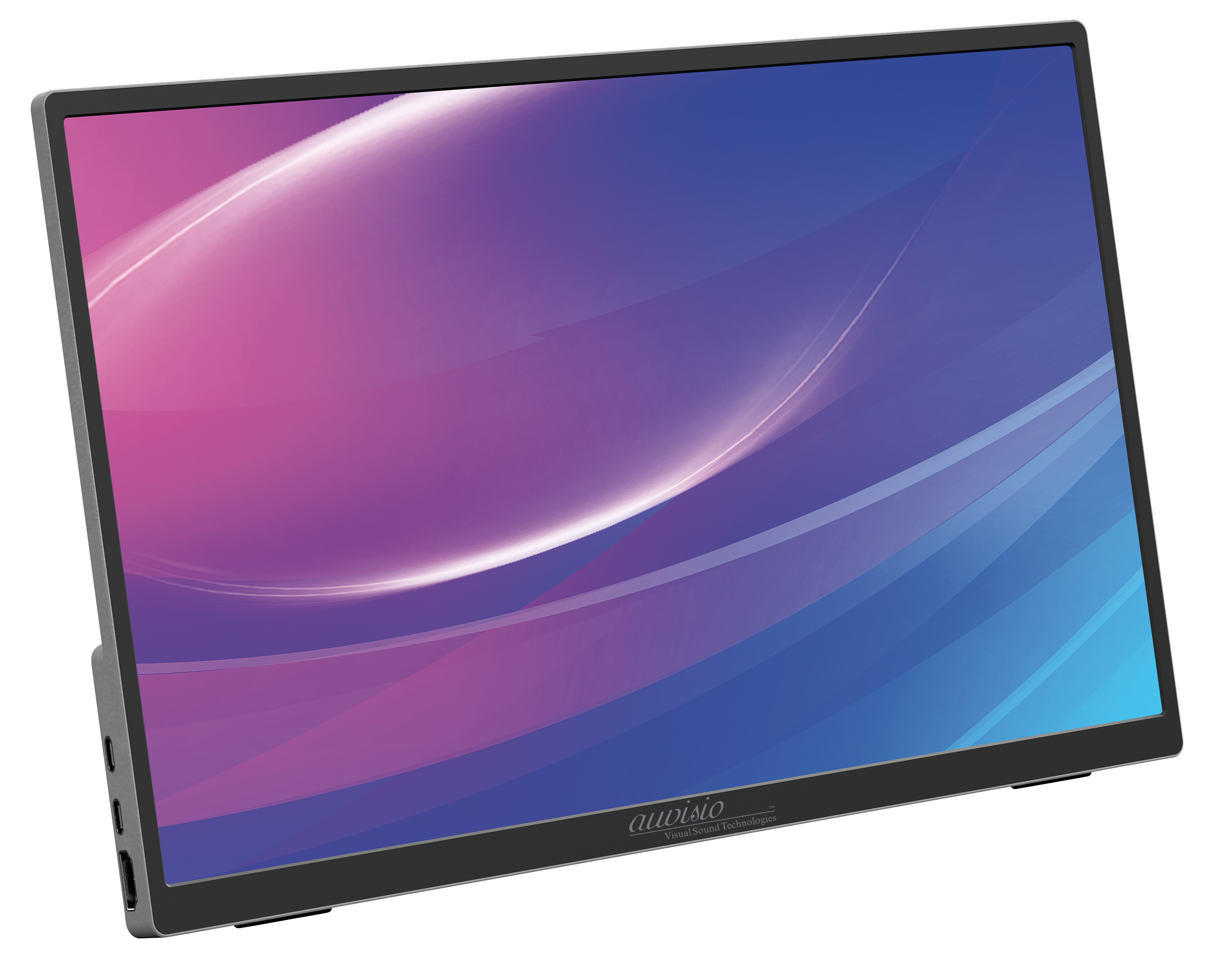 Der Zweitbildschirm für gehobene Ansprüche: Mit dem ultradünnen Full-HD-Monitor von auvisio lässt sich die Desktop-Oberfläche von Laptop, MacBook, PC oder Mac ganz einfach per HDMI- und USB-C-Anschluss erweitern - und macht das Arbeiten am Computer deutlich komfortabler. Dank Full HD und Stereo-Lautsprechern verwandeln sich die Endgeräte sogar in ein kleines Heimkino.
