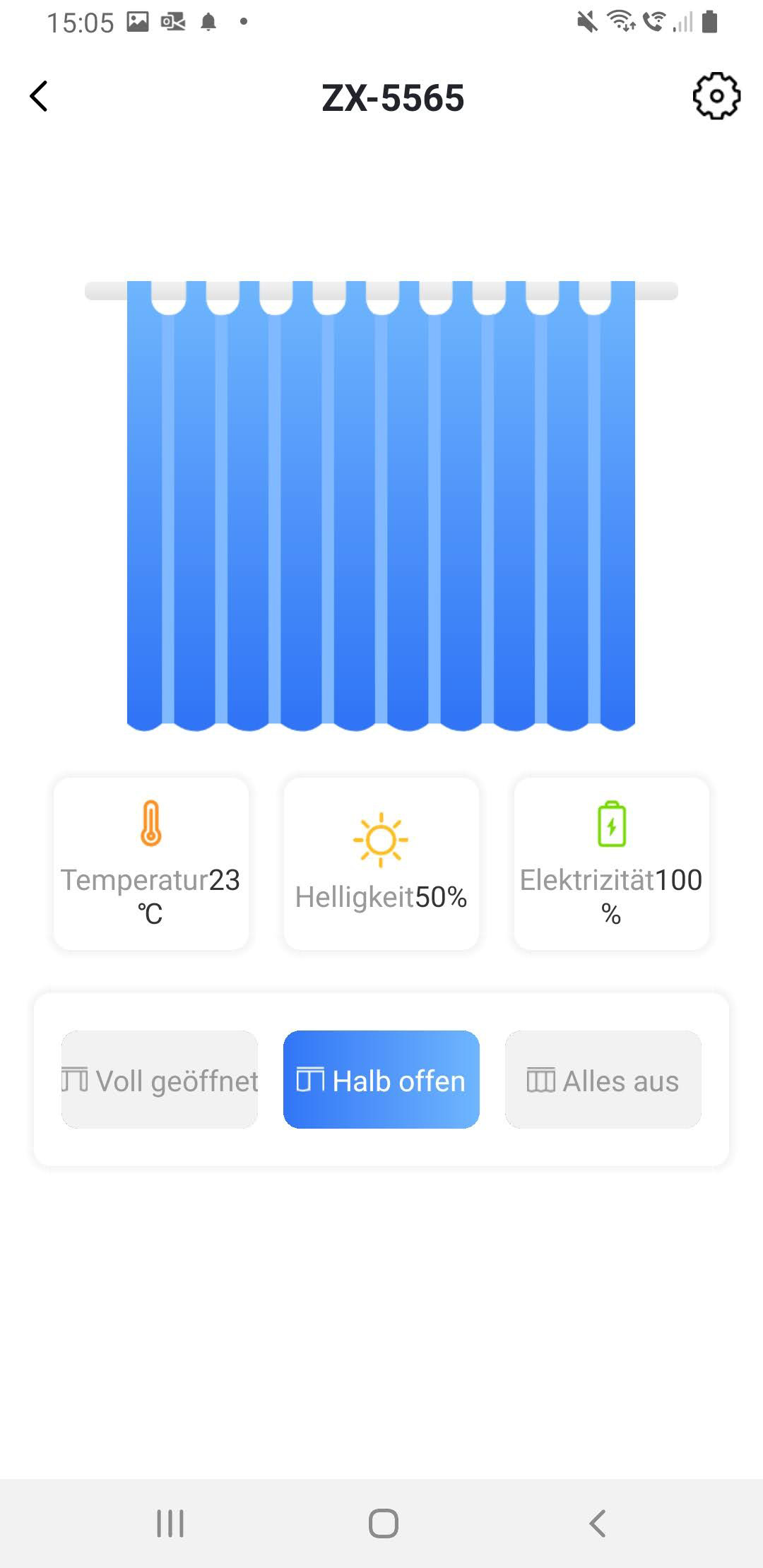 Die App "ELESION" ermöglicht die Bedienung des Vorhangs per Knopfdruck sowie die zeitgesteuerte Automatisierung über eine Zeitschaltuhr oder in Verbindung mit Sonnenauf- und -untergang. Diese Funktion ermöglicht eine tageszeitabhängige Steuerung der Vorhänge.