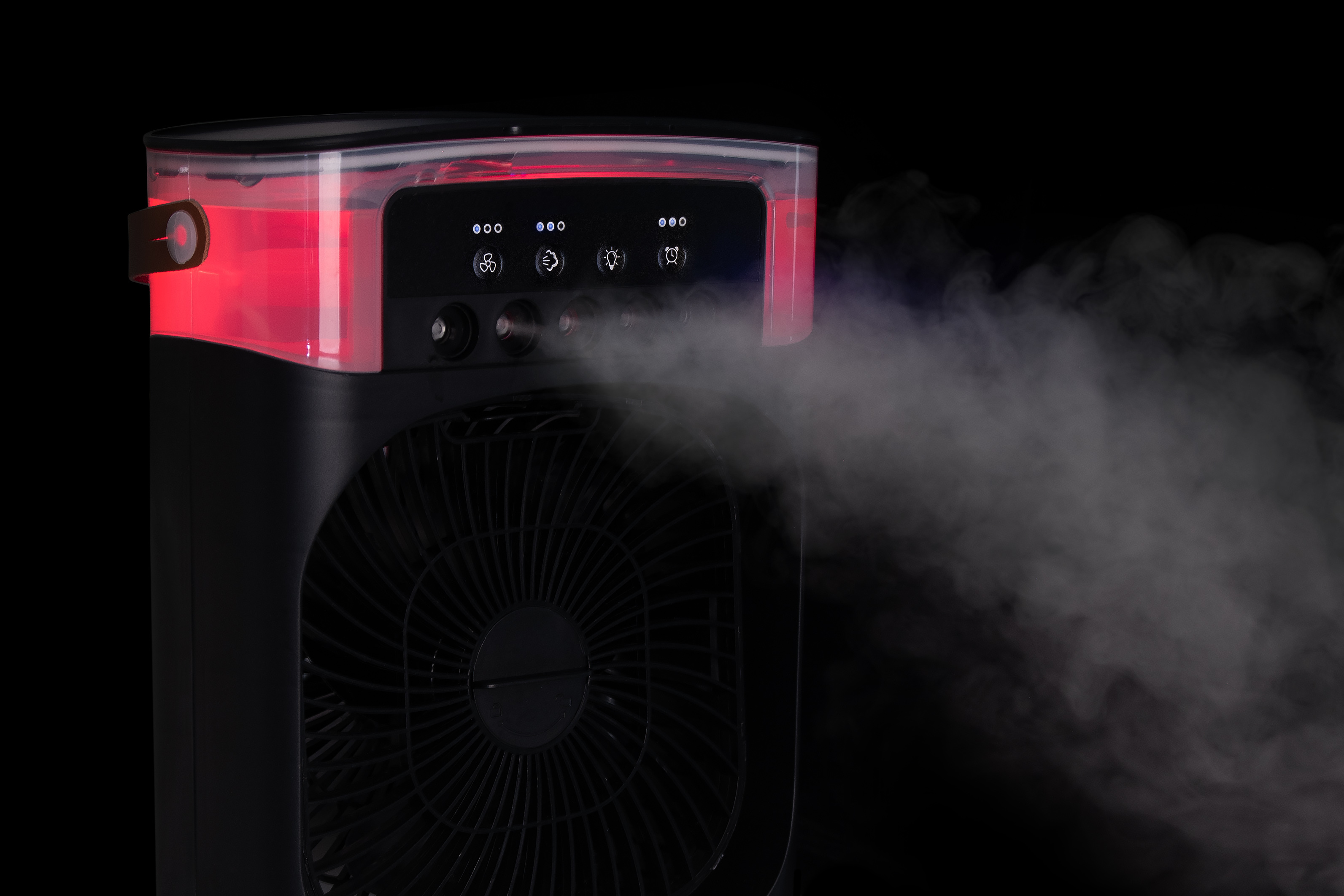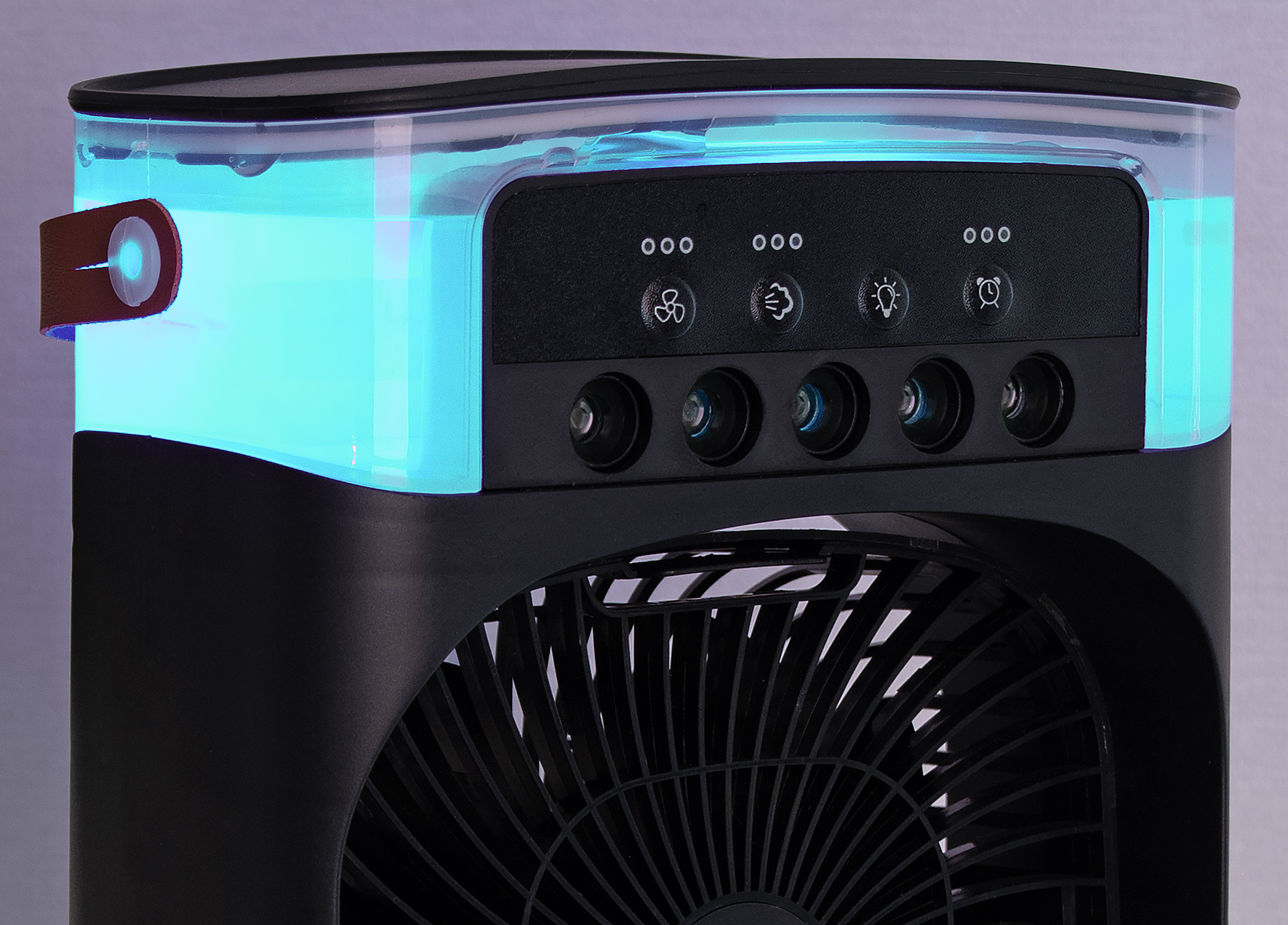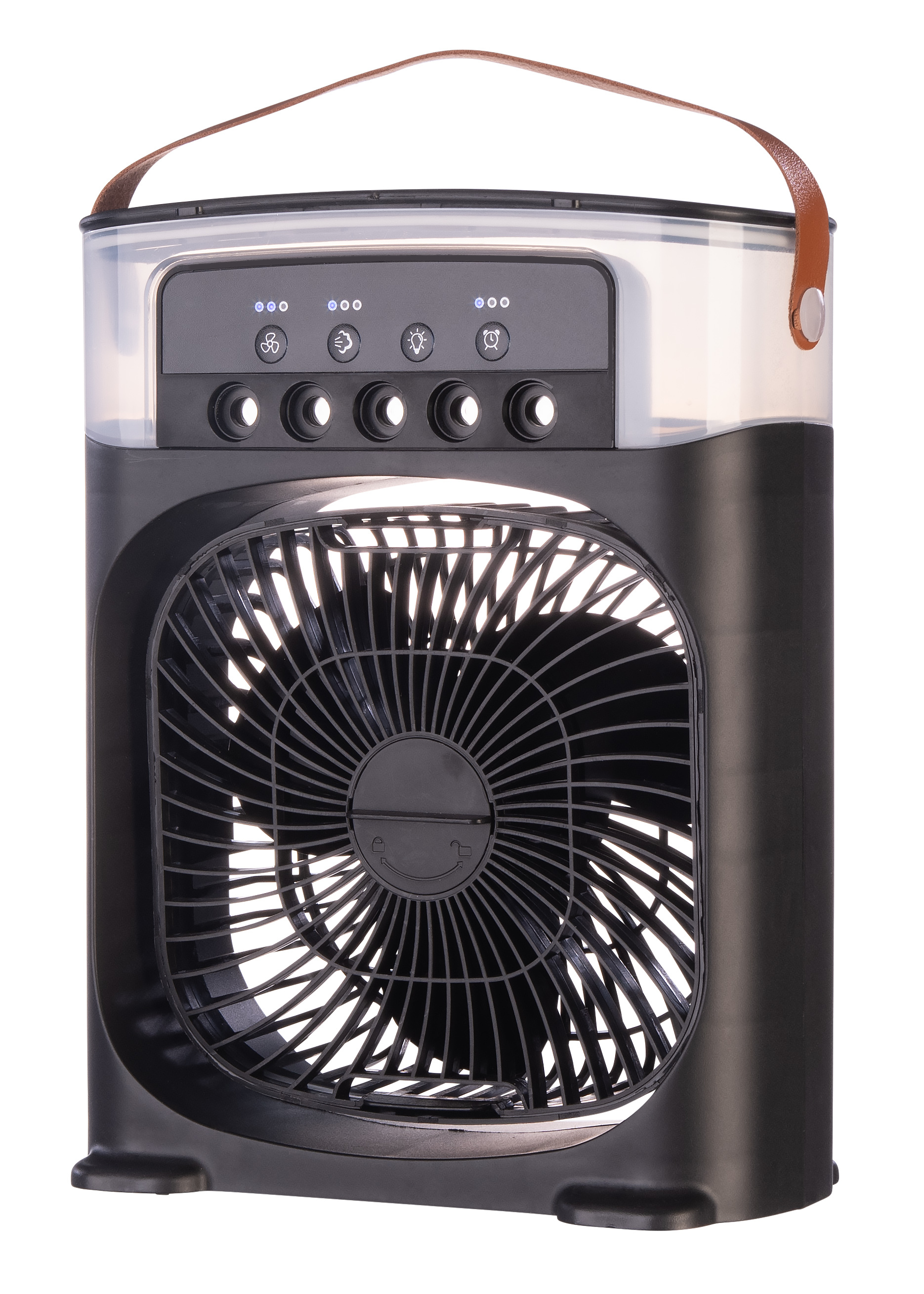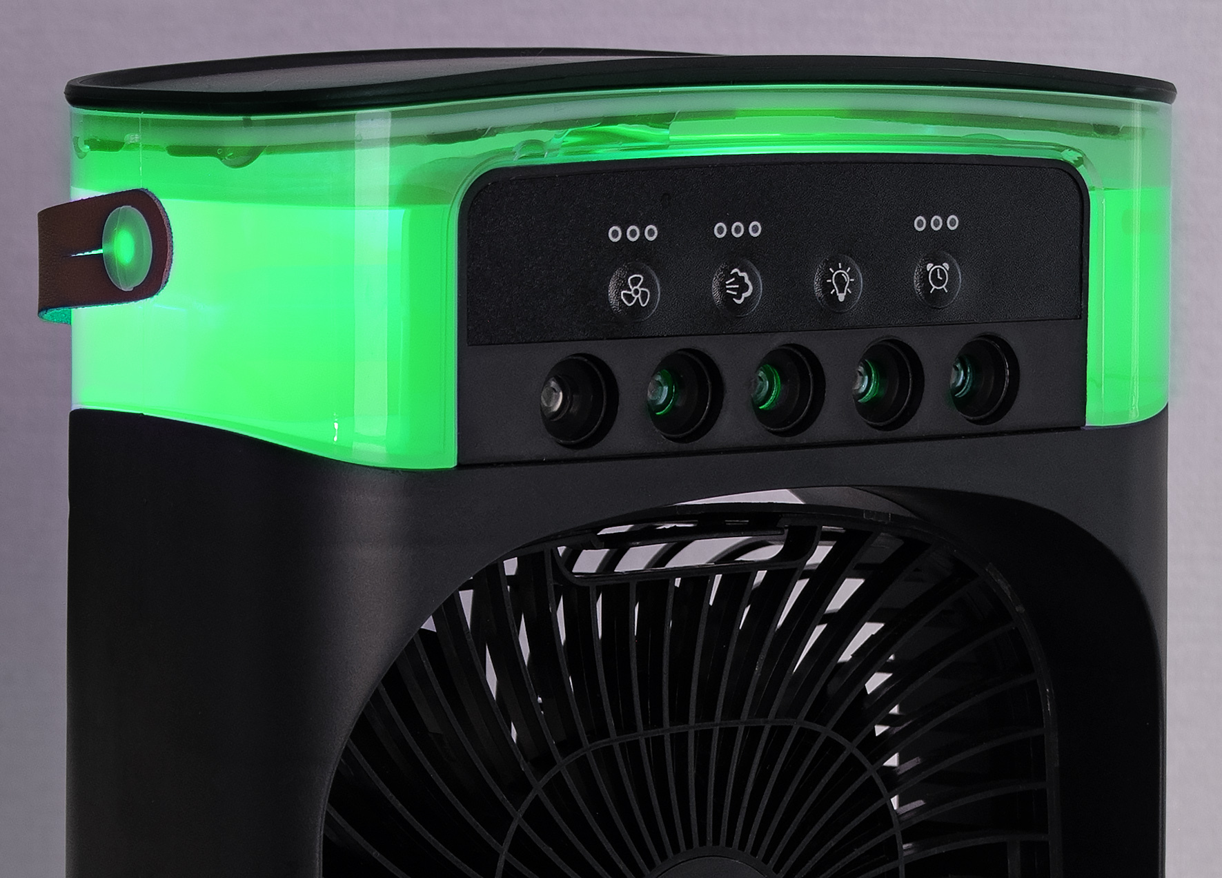 Der Ventilator kann multifunktional eingesetzt werden. Es stehen jeweils drei Gebläse- und Sprühstufen zur Auswahl, um die passende Einstellung zu finden. Zusätzlich kann der Tischventilator als Nachtlicht mit verschiedenen Leuchtfarben genutzt werden. Eine Timerfunktion ermöglicht das automatische Abschalten des Gerätes nach der gewünschten Zeit.