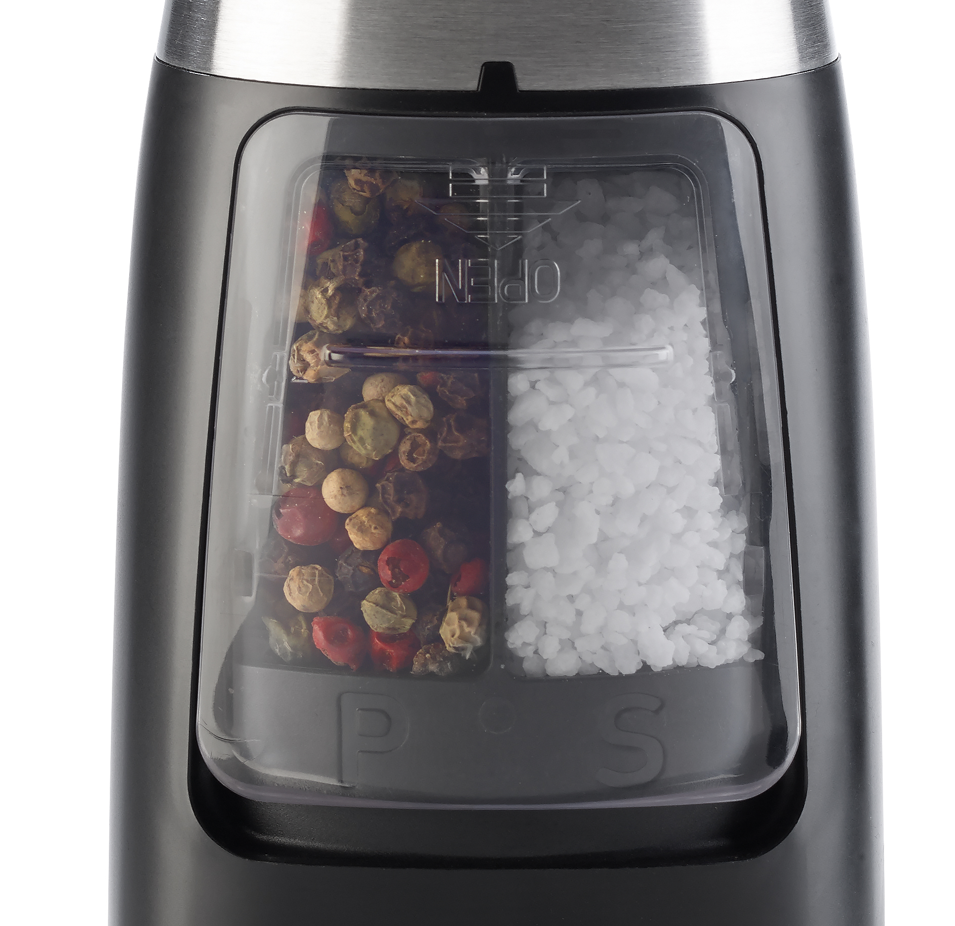 Praktische Einhandbedienung: Durch die Einhandbedienung zum Würzen mit Salz und Pfeffer bleibt immer eine Hand frei, um z.B. das Kochgut festzuhalten oder den Kochlöffel zu benutzen.