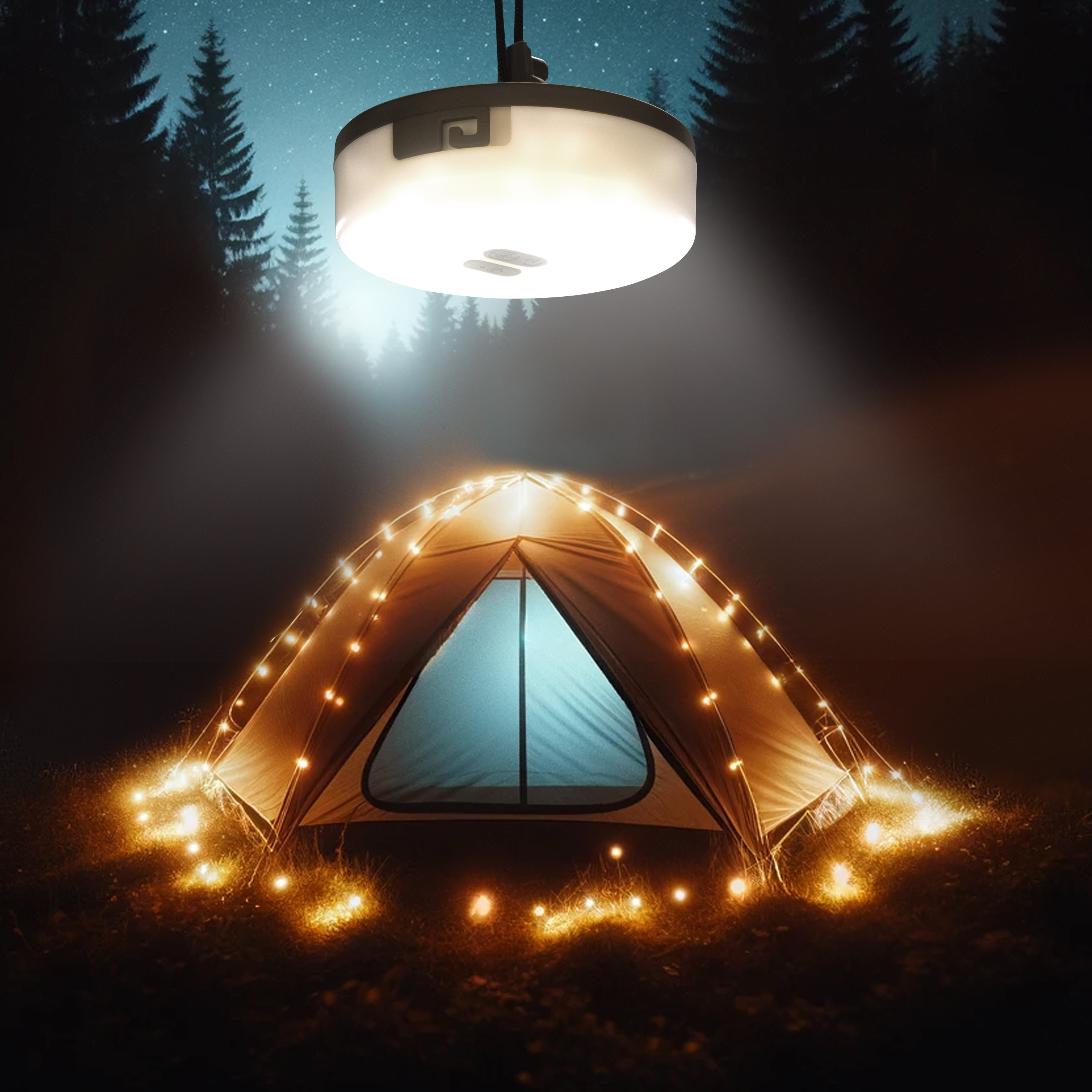 Die 2in1-Akku-Campingleuchte mit Lichterkette von Lunartec ermöglicht eine vielseitige Beleuchtung rund um Zelt oder Wohnwagen. Sie bietet sowohl eine Lichtquelle für kleine Arbeiten oder zum Lesen als auch eine stimmungsvolle Beleuchtung für den Außenbereich.
