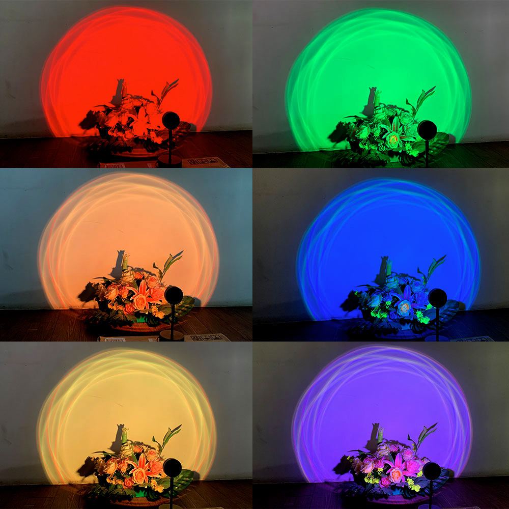 Mit dem RGB-Sonnenuntergangs-LED-Projektionslicht von Luminea Home Control lässt sich ein stimmungsvoller Sonnenuntergang im Innenraum erleben. Ein LED-Strahler wirft ein kreisförmiges Licht auf Wände, Decken und Böden und schafft so ein einzigartiges visuelles Erlebnis. RGB-LEDs lassen den Sonnenuntergang in verschiedenen Farben erstrahlen. Der um 180 Grad drehbare Lampenkopf ermöglicht unterschiedliche Lichteffekte.