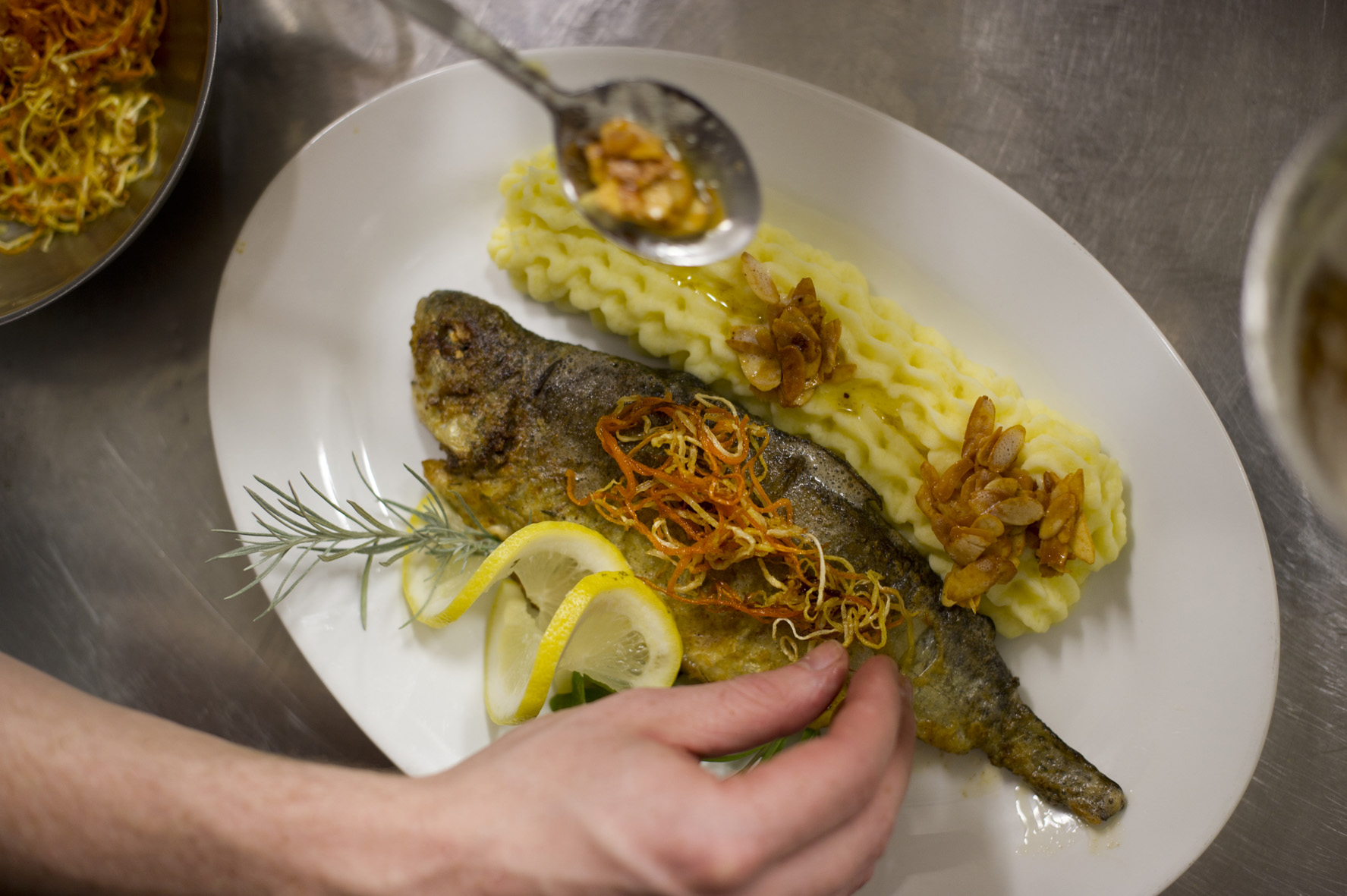 Küchenchef Norman Wegner kauft am liebsten regional ein.Die Räucherforellen stammen aus der Forellenräucherei Ernst im Taunus.