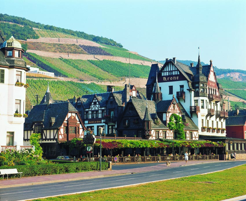 Das Hotel Krone Assmannshausen liegt direkt am Rhein