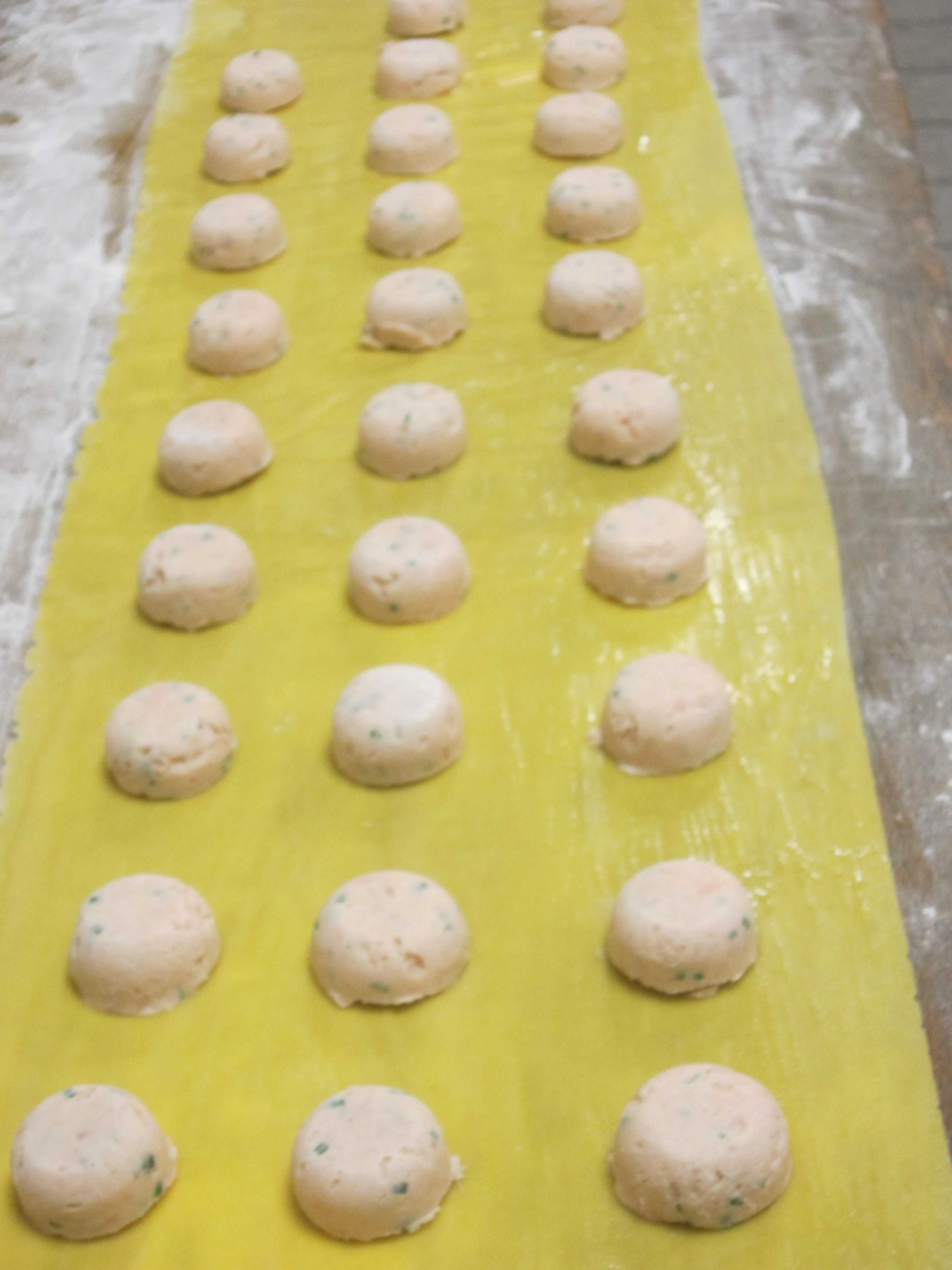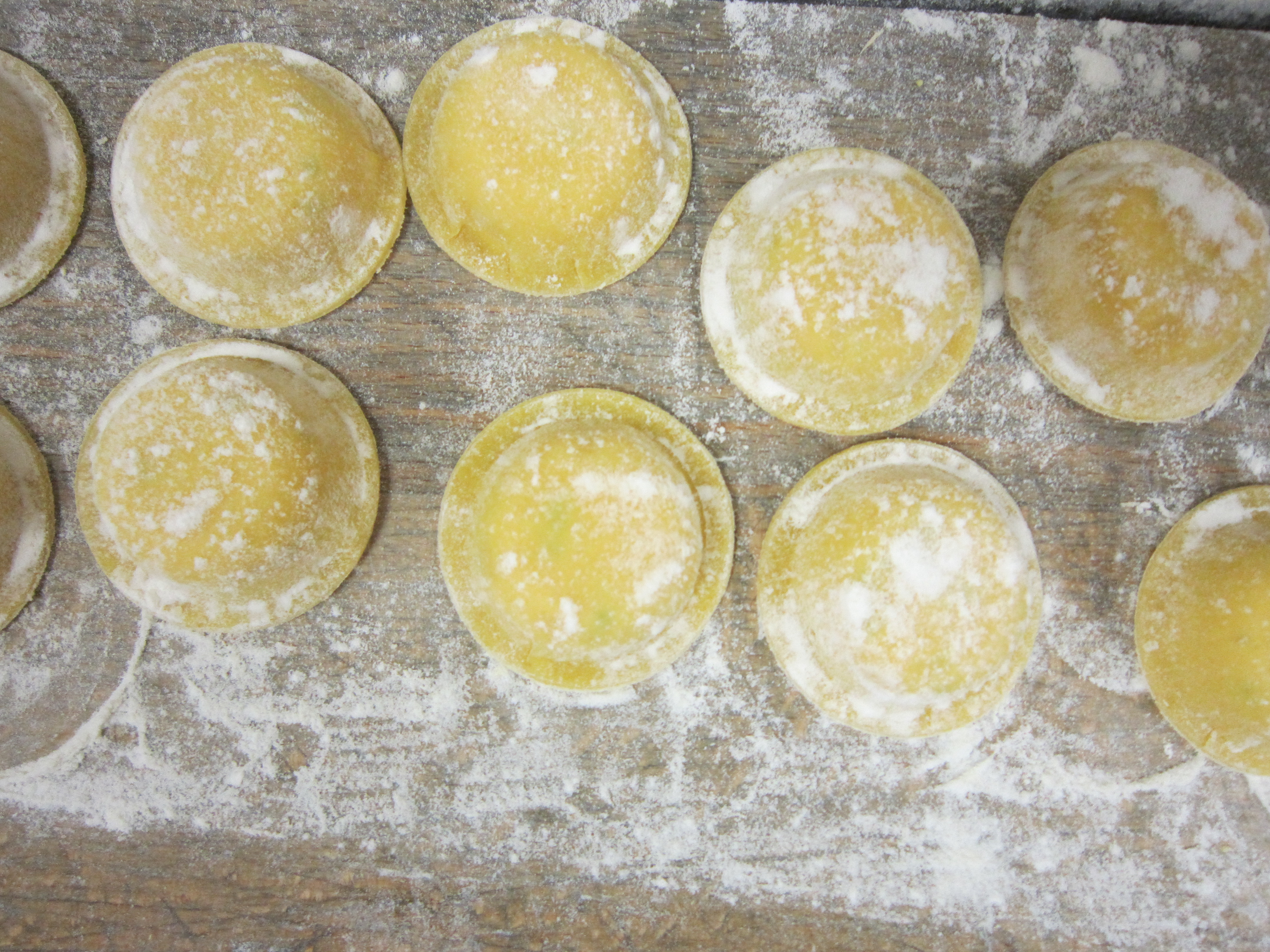 Ravioli ausstechen und anschließend die Ränder erneut zusammendrücken.