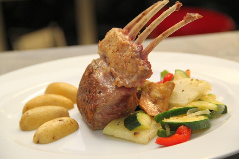 Gebratenes Lammkarree auf Ratatouillegemüse und Rosmarinkartoffeln
