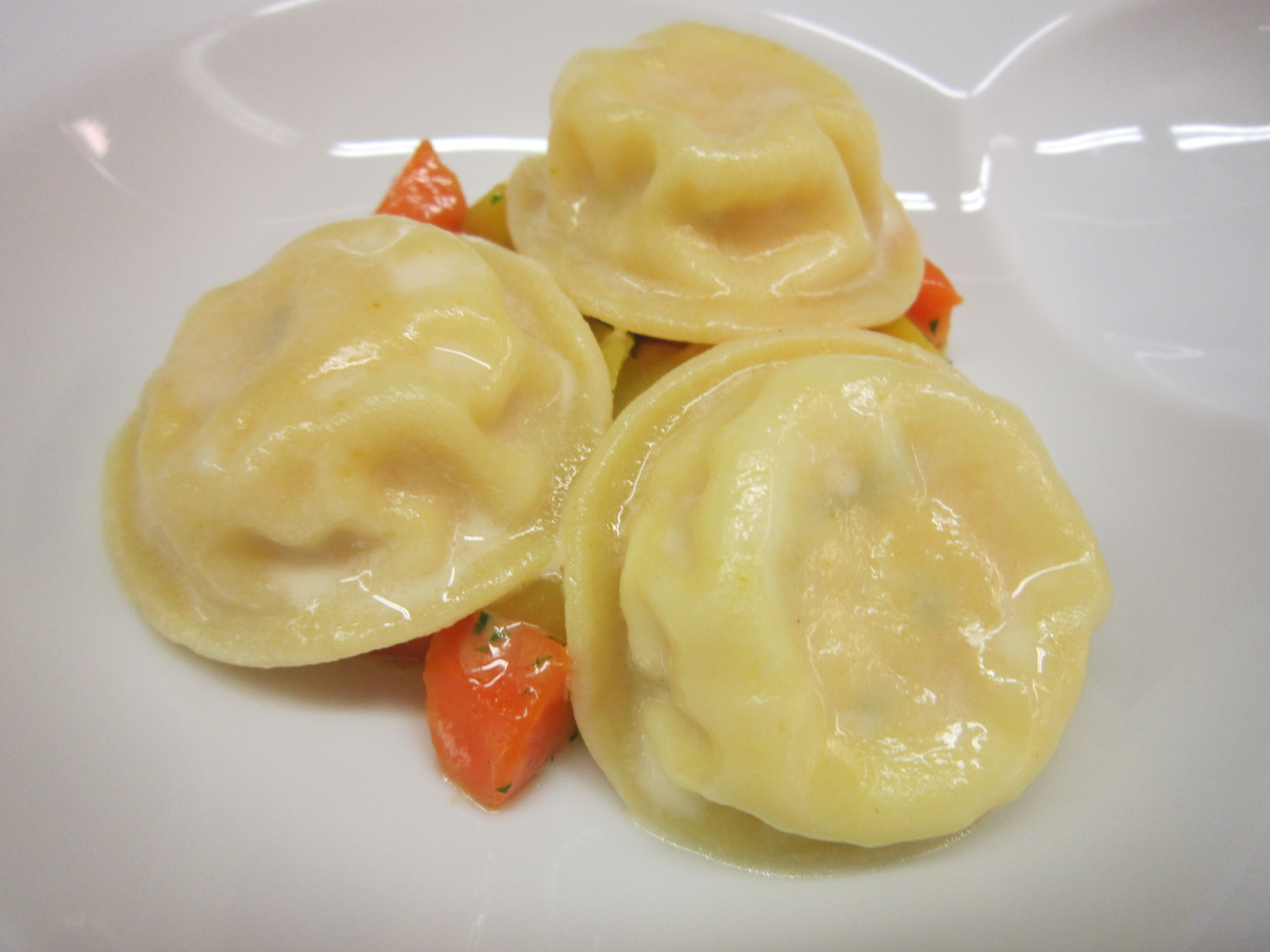 Die Ravioli direkt in gesalzenem Wasser kurz aufkochen, nach dem Garen durch flüssige Butter schwenken und sofort mit dem Räucherfischsud servieren.
