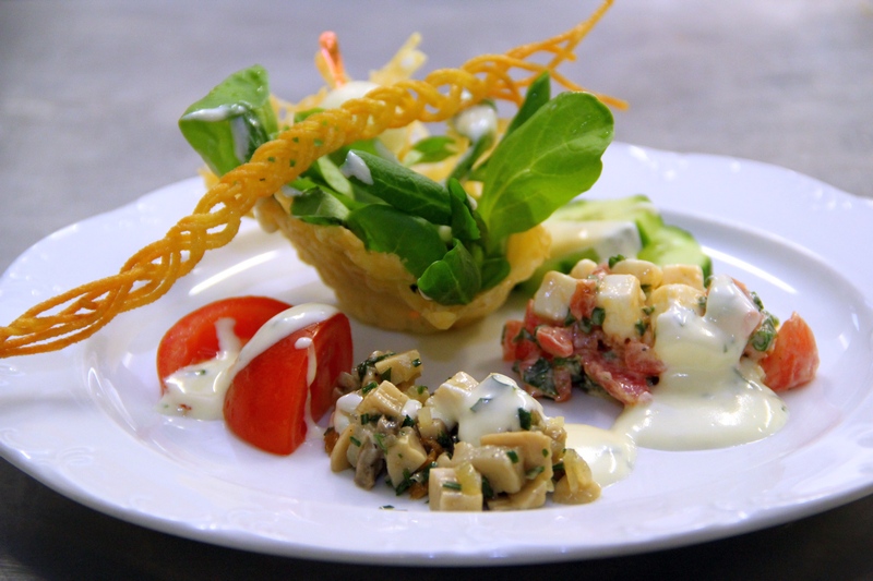 Rapunzel-Salat im Trendelburger Landkäse-Nestchen mit Rapunzelzopf
