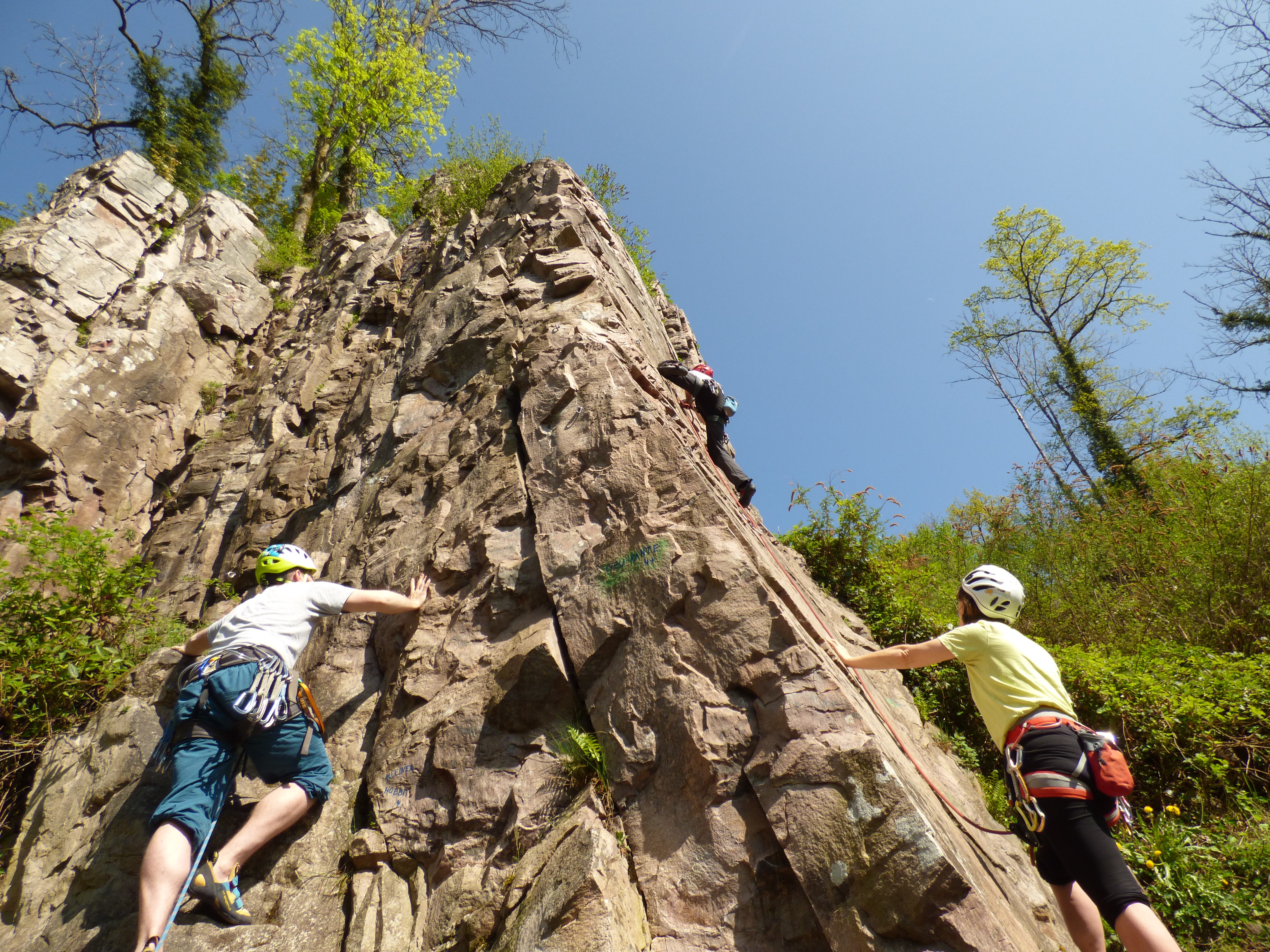 Es gibt die rauen Platten des Teufelsfelsen, den griffigen Gneis am Gfällfelsen, die abschüssigen Leisten im Schlüchttal. Sportkletterer können in Albbruck Routen spulen und in der Abendsonne des Kandelfelsen mit Blick auf die Vogesen entspannen. Klettern ist ein vielseitiger Sport. Viele Anfänger steigen mit Indoor-Bouldern ein, Klettern ohne Seil auf Absprunghöhe und über Matten. Beim Sportklettern sichert ein Partner den Kletterer mit einem Seil. Beim Vorstiegsklettern hängt der Kletterer regelmäßig Sicherungen ein, beim Toprope ist das Seil bereits am Ende der Route eingehängt. Dann gibt es noch Disziplinen wie Parkour, Eisklettern und Alpinklettern.