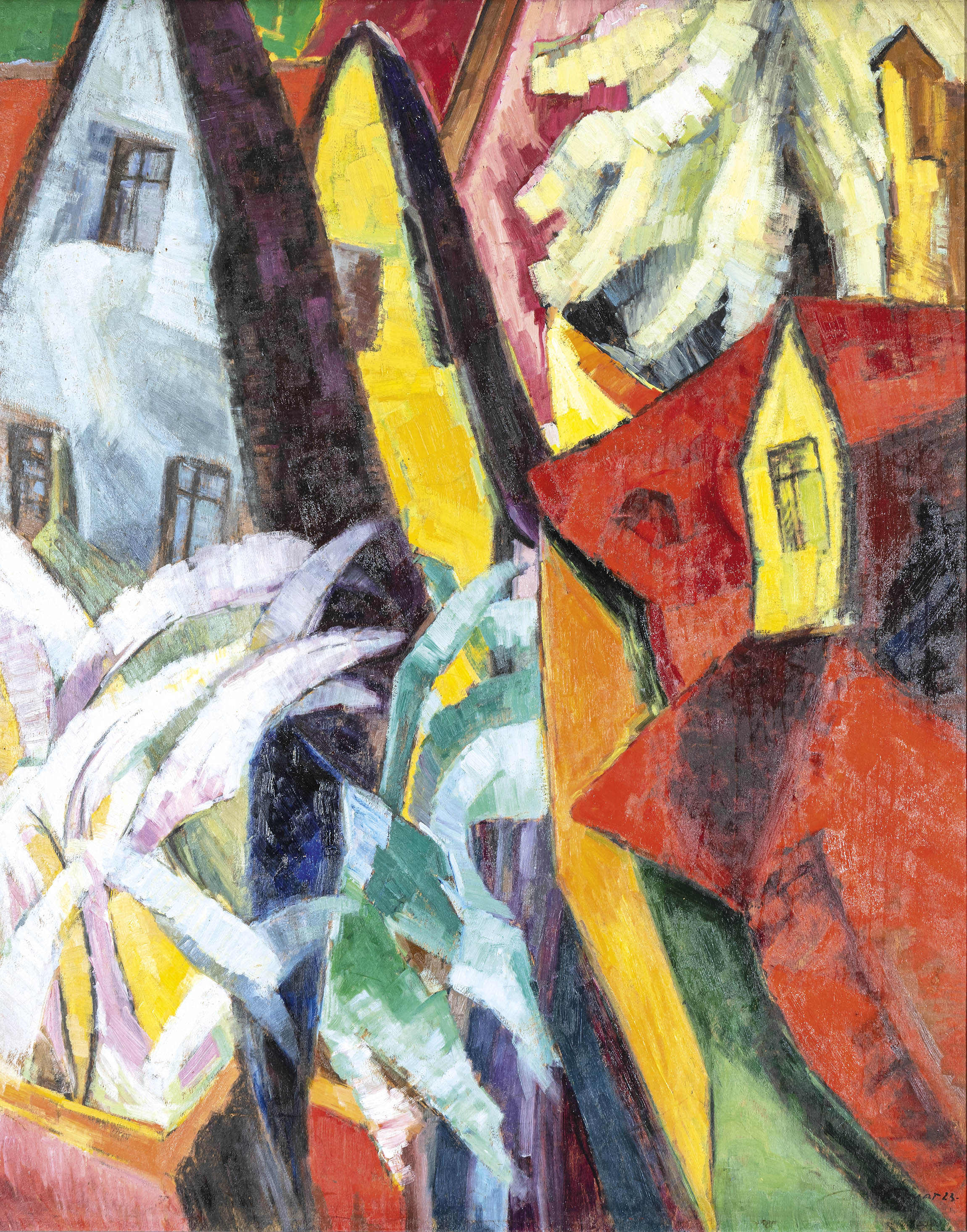 1938 Thuar Große Giebelhäuser Öl
