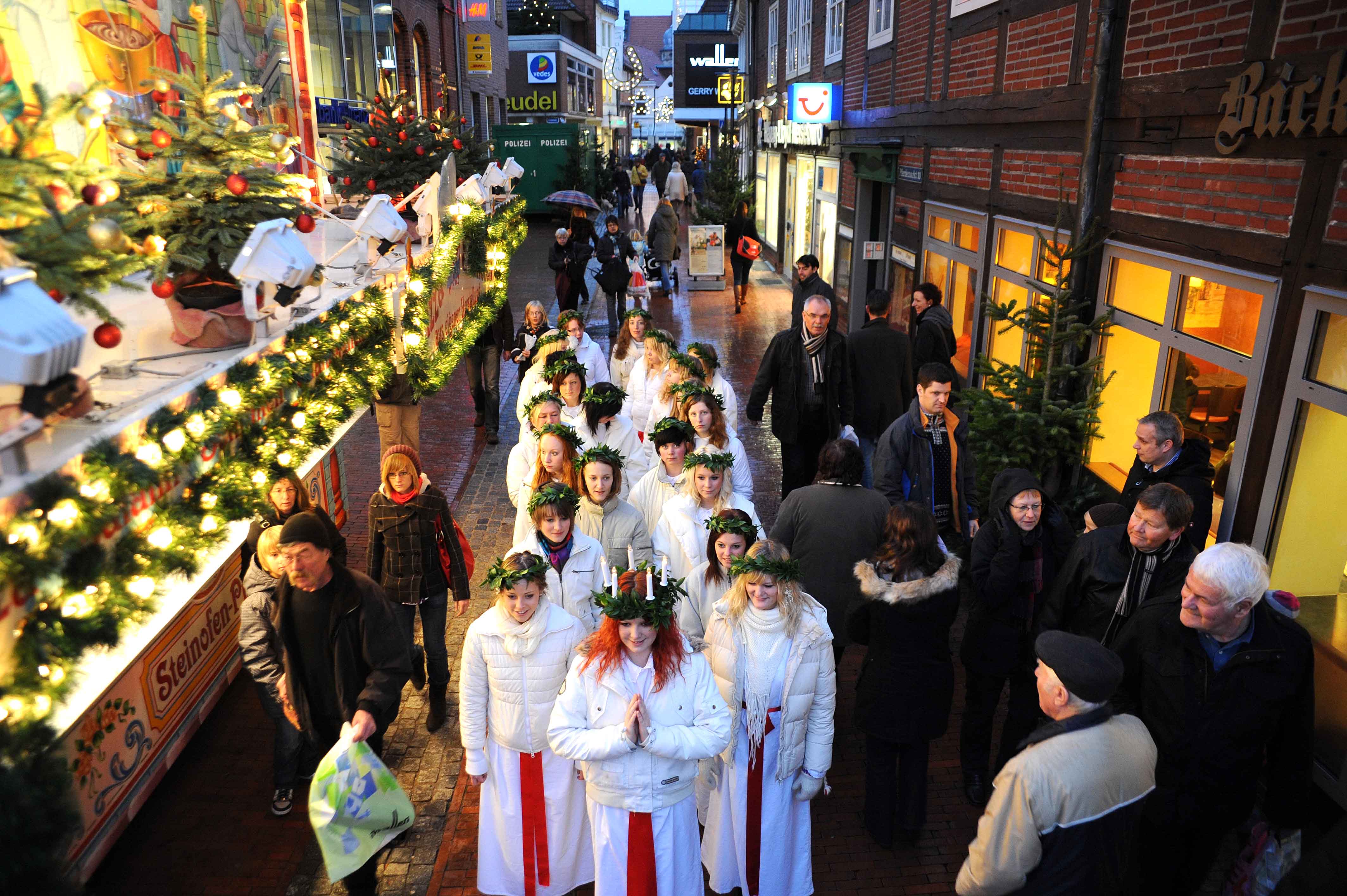 Schwedische Lichterkönigin Lucia erscheint in Stade zum Weihnachtsmarkt / STADE Tourismus-GmbH/Martin Elsen