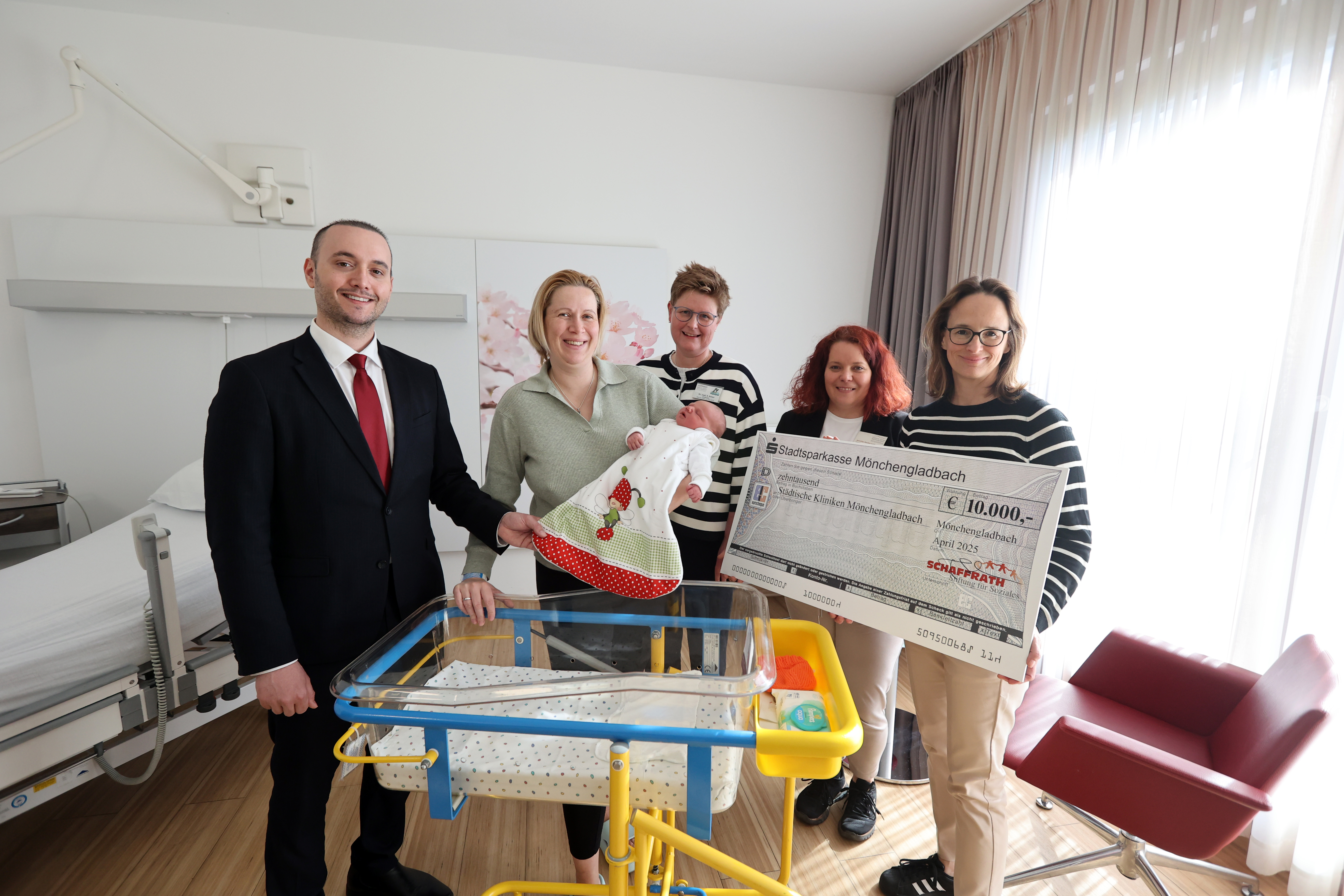 Eine gute Entscheidung traf Frederic Schaffrath mit seiner finanziellen Hilfe für die Mutter-Kind-Klinik des Eli. Denn die Schaffrath Stiftung für Soziales ermöglicht damit vielen Babys einen sicheren Start ins Leben. „Den Kleinsten einen bestmöglichen Start ins Leben zu ermöglichen, ist eine besonders wertvolle Arbeit. Deshalb unterstützen wir die Städtischen Kliniken bei ihrer Aufgabe gerne und aus voller Überzeugung und freuen uns, dass wir mit unserer Spende den Eltern und Kindern helfen können“, sagt Frederic Schaffrath bei der Übergabe des symbolischen Schecks. Die Spende stellt eine bedeutende Ergänzung zur Versorgung der jüngsten Patientinnen und Patienten der Städtischen Kliniken Mönchengladbach dar. "Im Namen der Familien, die wir betreuen, bedanke ich mich herzlich für diese großzügige Unterstützung", äußert Dr. Ariane Sporkmann und Dr. Sabine Keiser ergänzt aus Sicht der Kinderklinik: „Über die Spende der Schaffrath-Stiftung freuen wir uns riesig. Diese Zuwendung ermöglicht es uns, viele Neugeborene auf ihrem Weg ins Leben zu begleiten.“