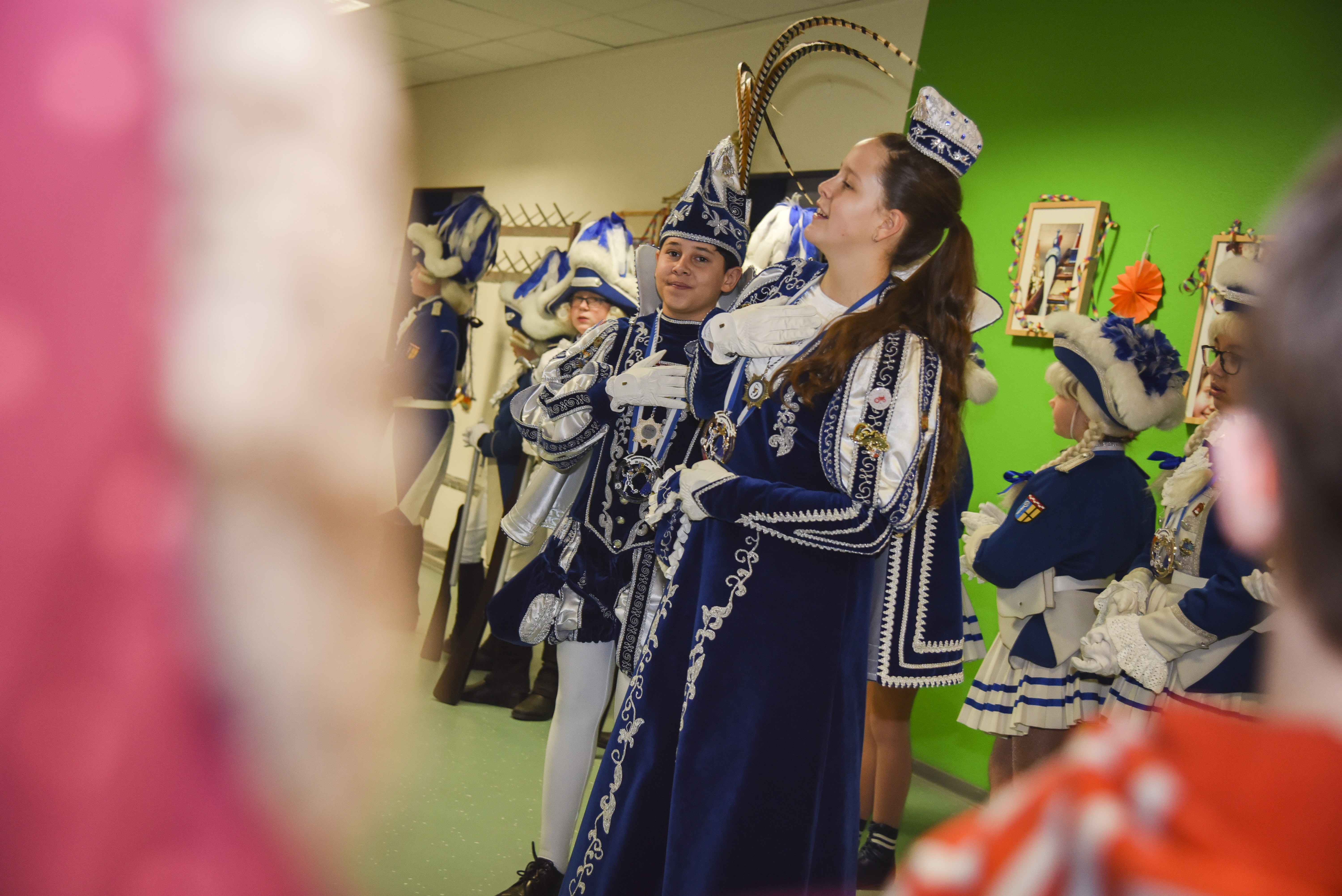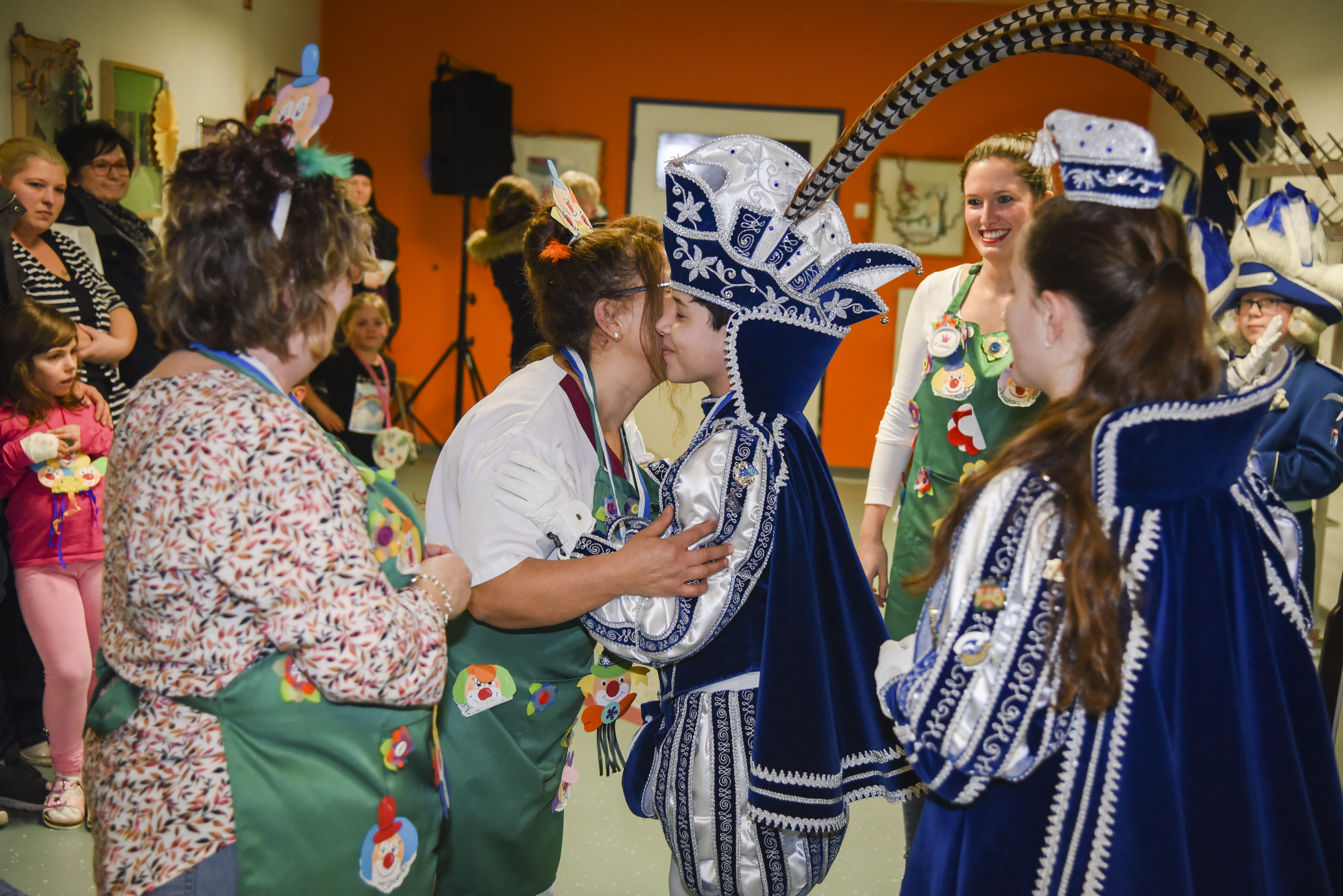 Die junge Garde tanzte ausgiebig zur Musik, Prinz Louis I. und Prinzessin Theresa I. sangen „ihr Lied“ mit der eingängigen Zeile „Denn unseren Karneval, den lieben wir total“. Für die Kinder gab es dann noch eine Überraschung, denn die jungen Regenten waren nicht mit leeren Händen gekommen. Für jeden gab es ein kleines Plüschtier, „das euch helfen soll, schneller gesund zu werden.“