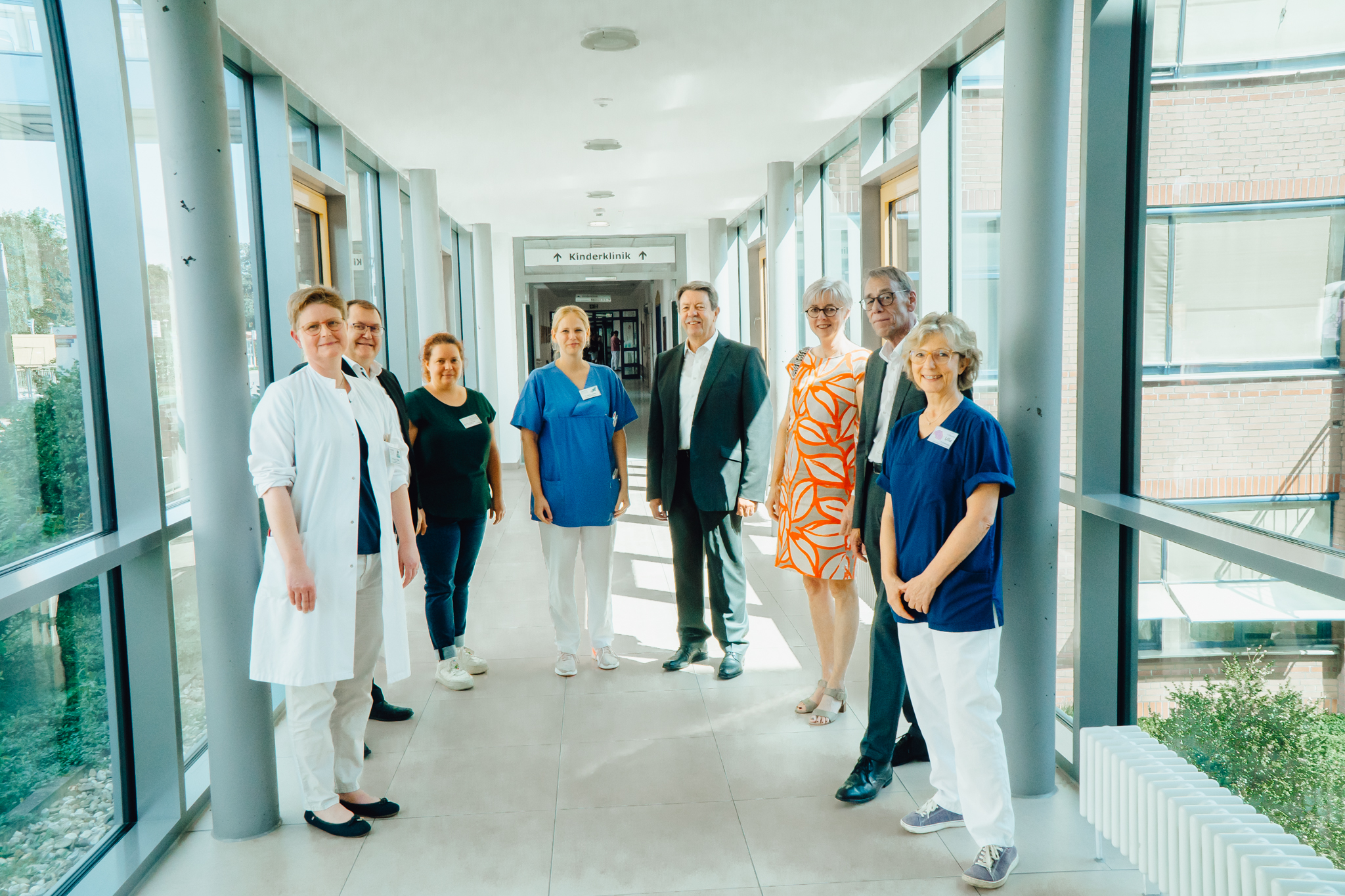 Dr. Sabine Keiser, Chefärztin der Klinik für Kinder und Jugendliche der Städtischen Kliniken Mönchengladbach, Dr. Anja Jaeger, Oberärztin Neonatologie, Jennifer Kocks-Lugt, Pflegedienstleitung, und Ursula Wittwer, Stationsleitung K5, begrüßten kürzlich Hans-Gerd Bock, Leiter UnternehmenskundenCenter, und Bernd Ormanns, Leiter Unternehmenskommunikation Stadtsparkasse Mönchengladbach sowie Veronika Heuser, Geschäftsführerin proEli, und Herbert Schiffer, Schatzmeister proEli, um ihnen den Einsatz der gestifteten Stühle mit dem neonatologischen Behandlungsteam im Arbeitsalltag vorzustellen.