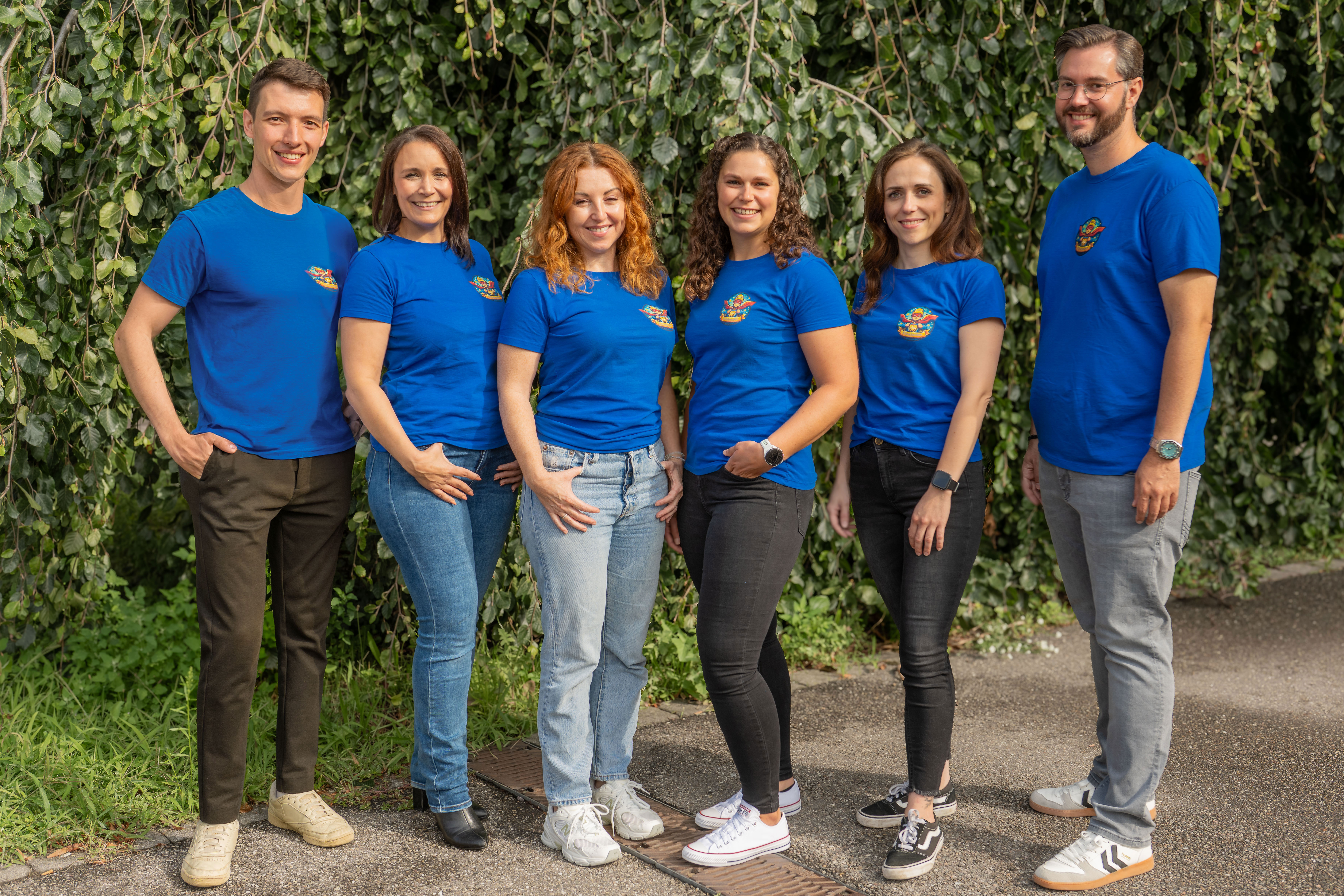 Prof. Sascha Meyer, Alfred Leipold, Oberarzt auf der Station S24, Admira Knoll, Yvonne Haßler, Pflegedienstleitung im Zentrum für Kinder und Frauen, Andreas „Joker“ Jopp, Peter Knoll, Vorsitzender der FUoKK Stiftung, Markus Heming und Dipl.-Ing. Stefan Eller (v.l.n.r.) auf der S24, wo bereits das erste Gerät eingebaut wurde