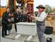 Entsprechend einem alten Brauch versenkte Ministerin Katrin Altpeter eine Zeitkapsel gefüllt mit Münzen, einer Ausgabe der BNN vom 16. Oktober sowie aktuellen Bauplänen in einem eigens für die Grundsteinlegung gefertigten Mauerpfeiler. Begleitet von Weihesprüchen des Projektleiters Neubau, Markus Riester, setzten Altpeter, Mentrup, Stapf, Hennes, Heming und Wörner bei der feierlichen Grundsteinlegung mit symbolischen Hammerschlägen den Startschuss für den Bau des neuen Institutsgebäudes.