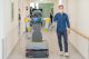 HolliE – so heißt der multifunktionale Serviceroboter mit einer Höhe von ca. 1,6 Metern, der in dieser Woche seinen Dienst im Städtischen Klinikum Karlsruhe tut. An der Testung im Realbetrieb im neuen Betten- und Funktionsgebäude Haus M sind Pflegekräfte und Patienten beteiligt. In einem eigens dafür eingerichteten Zimmer werden Grundfunktionen des Roboters von Patienten und Pflegekräften getestet.